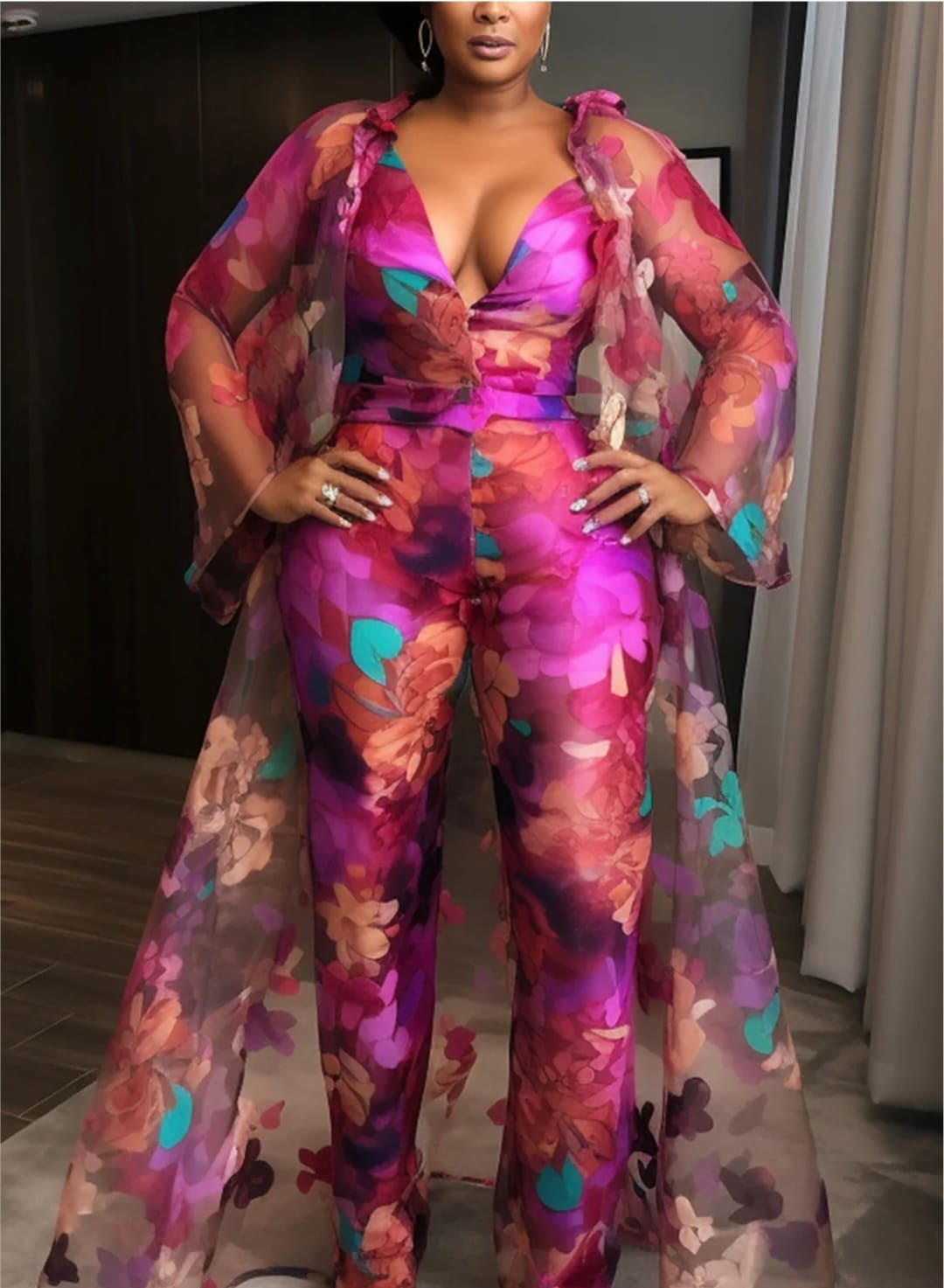 Multicolour 2pcs soft satin jumpsuit ✨️