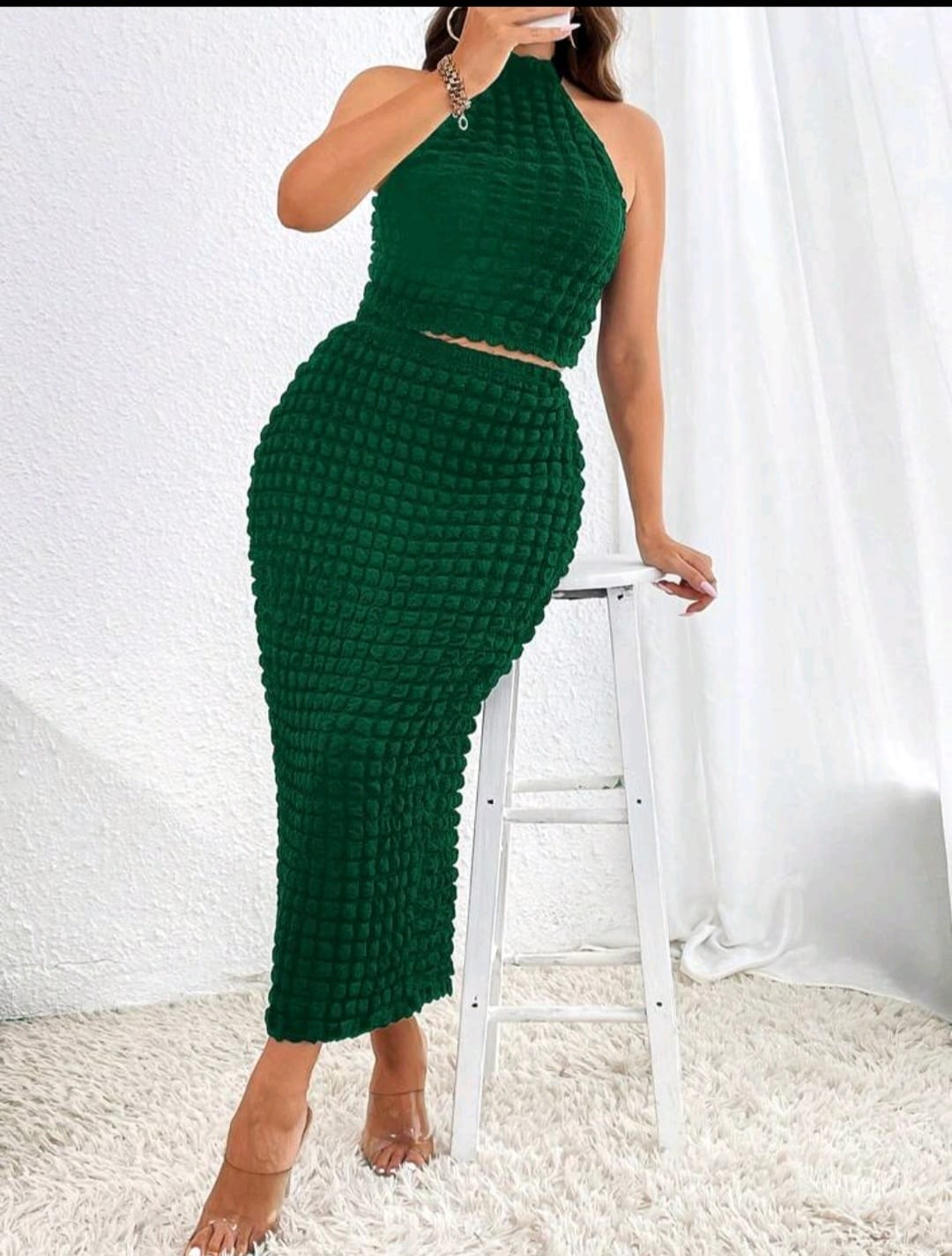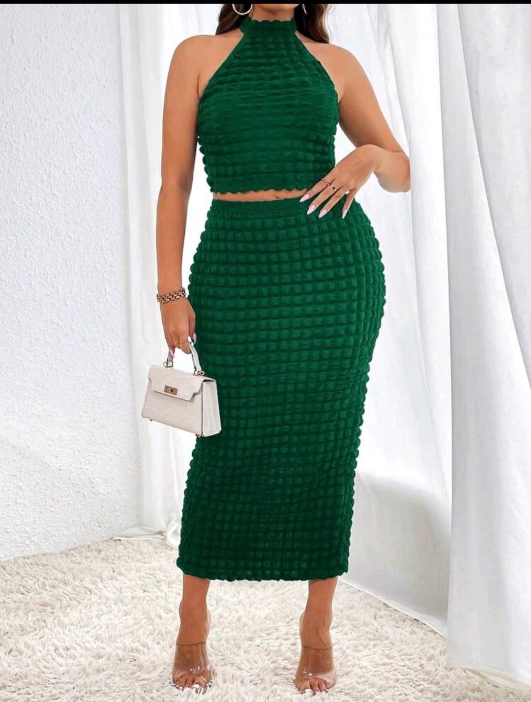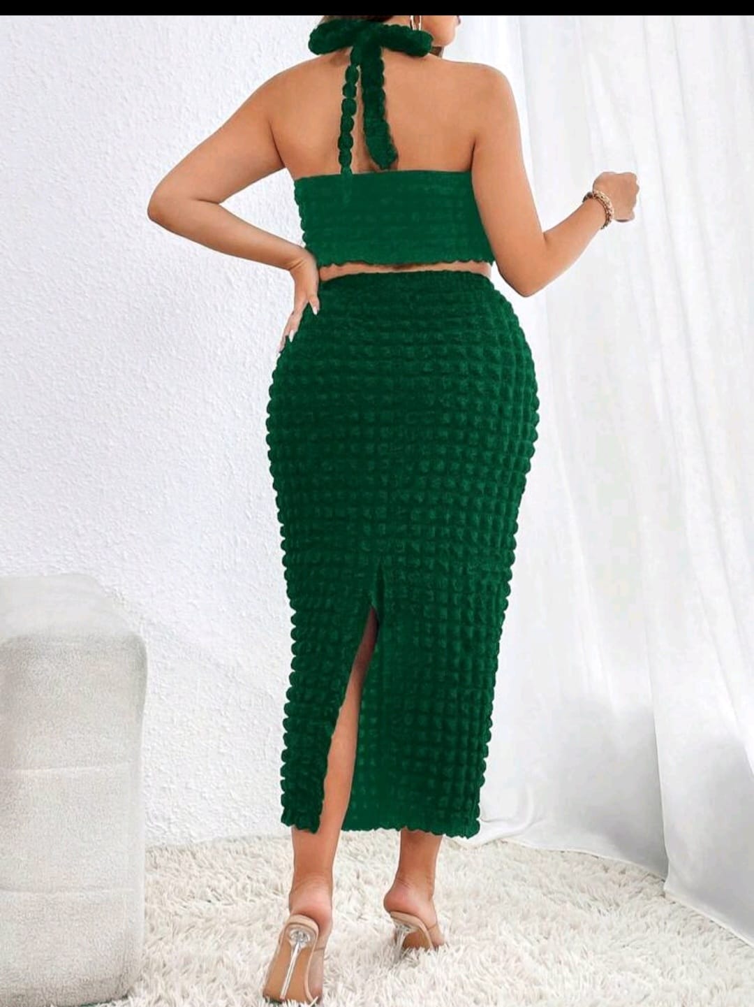 Plus solid halter top and pencil skirt