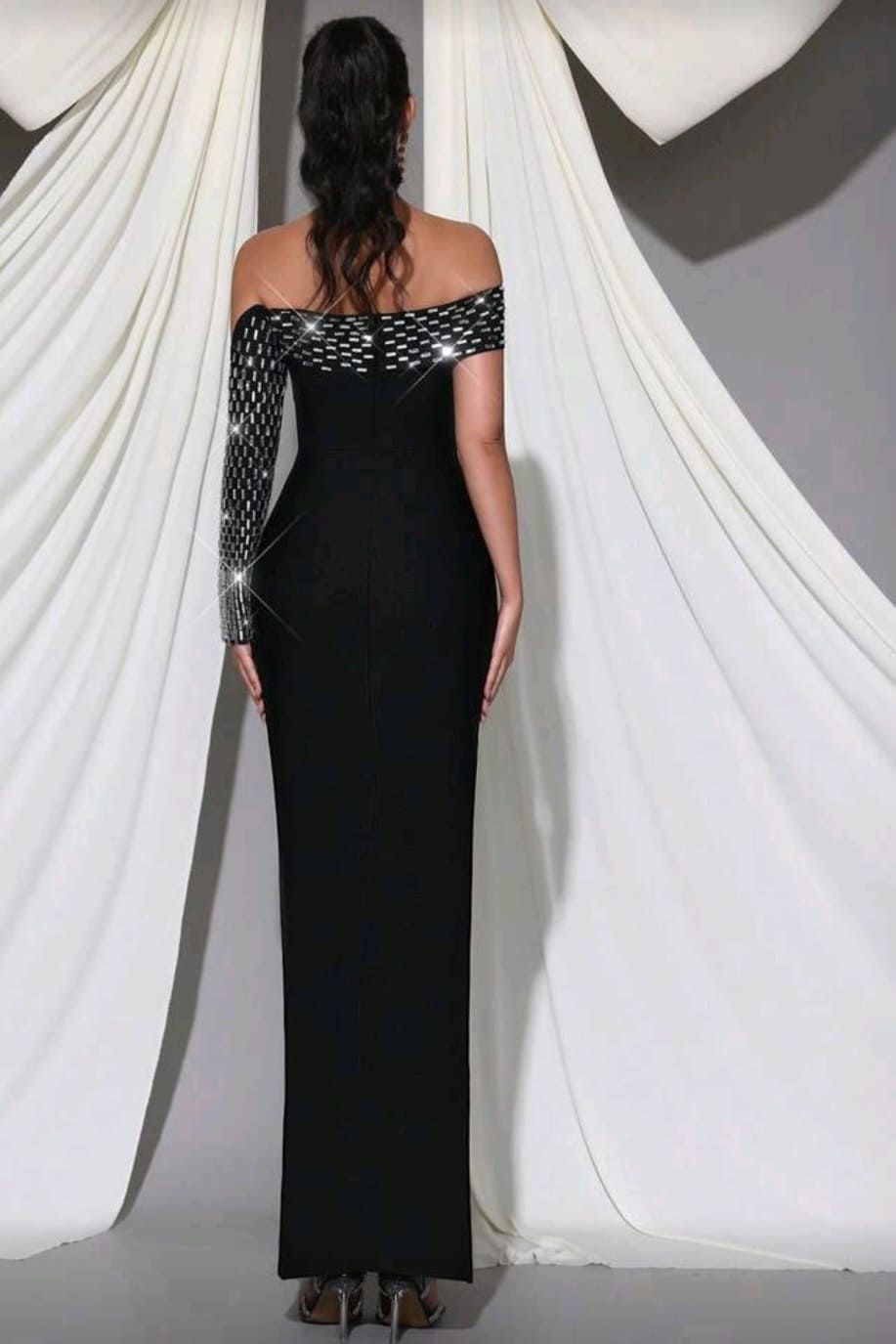 Bandage one shoulder long sleeve gown