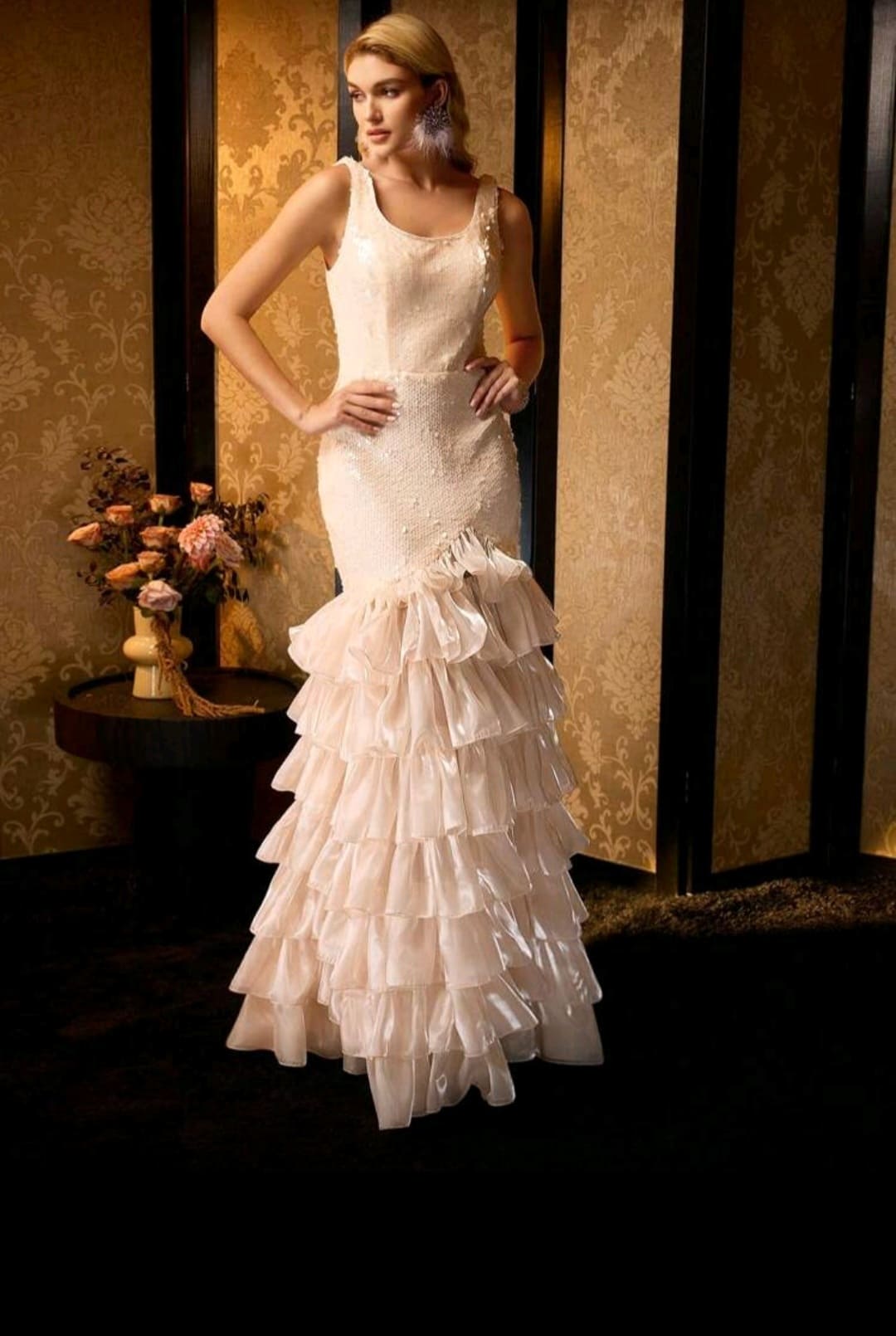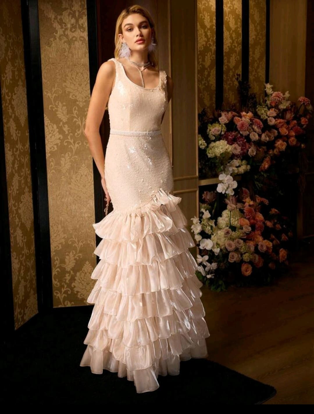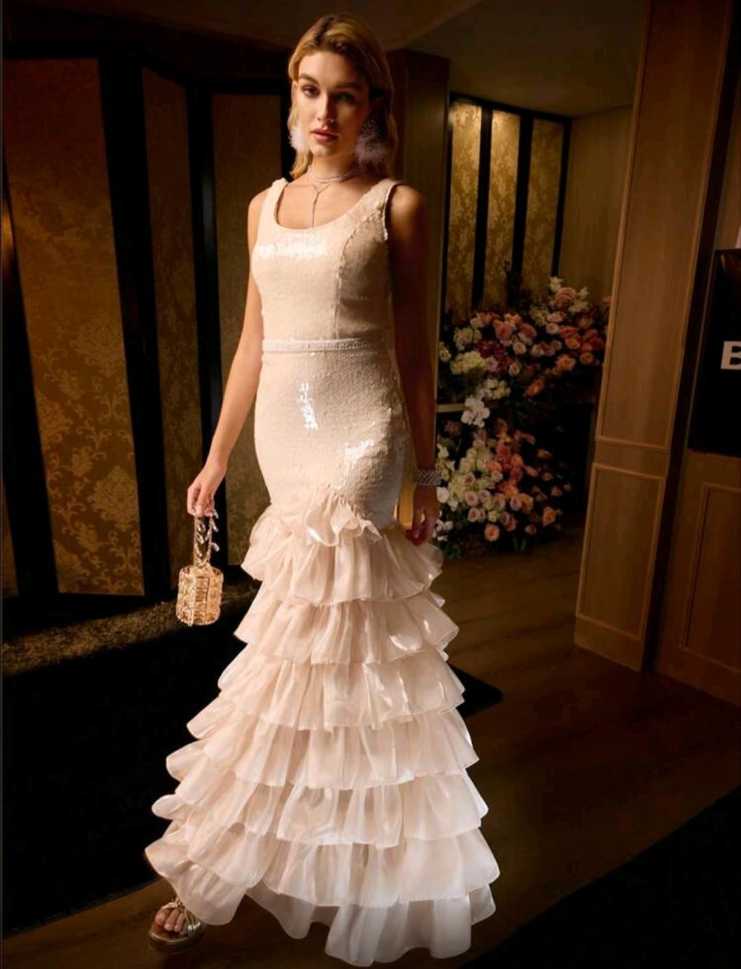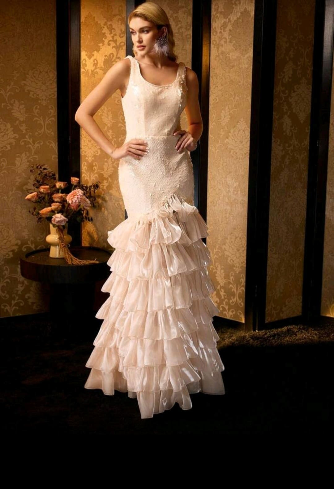 Asymmetrical ruffled Hem Glamorous evening dress for special occasions