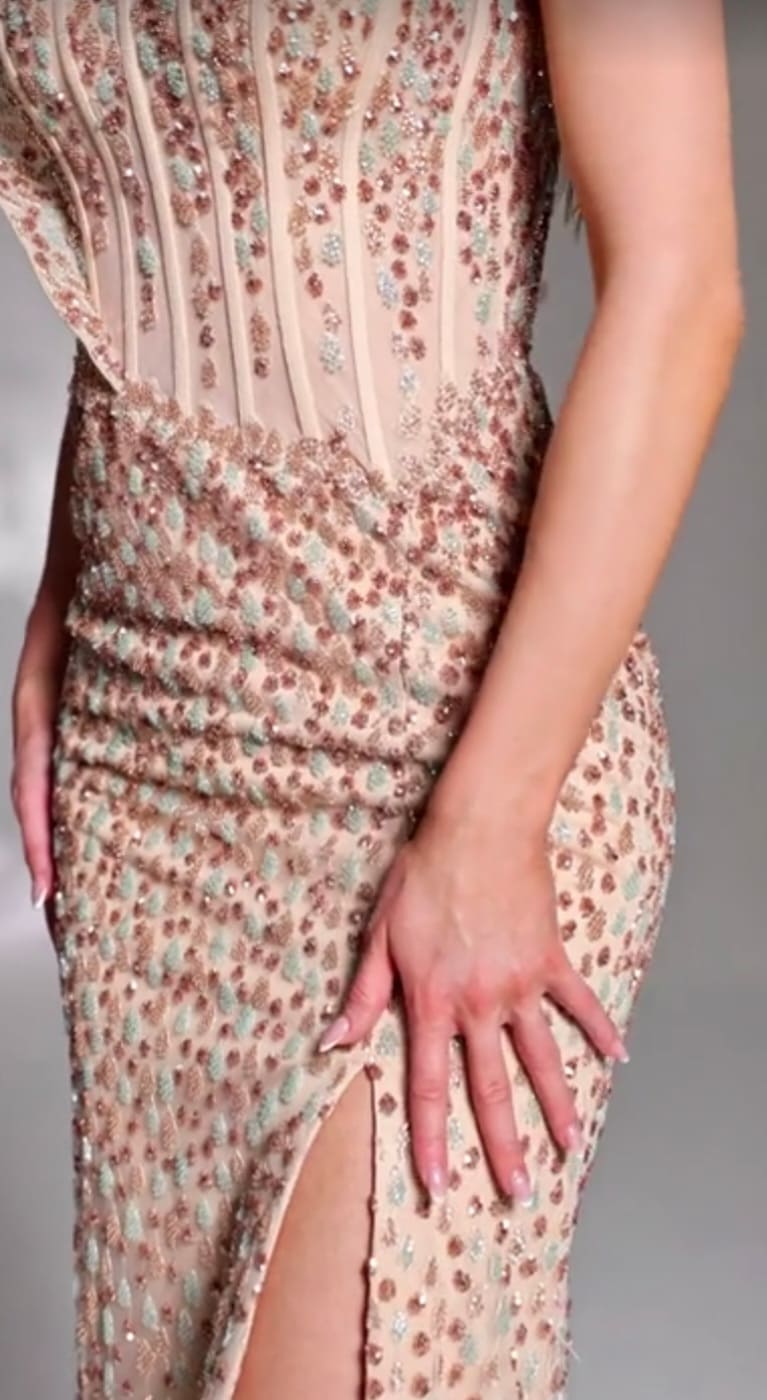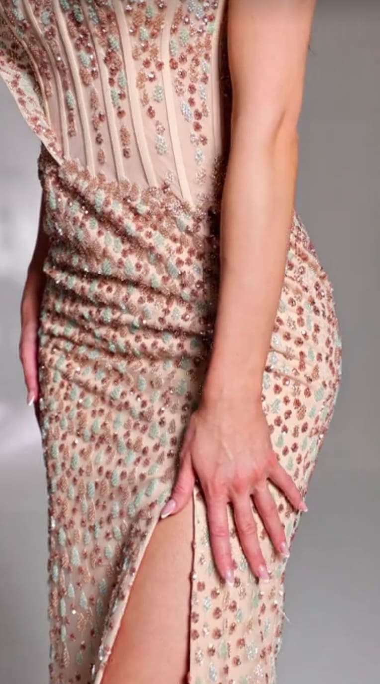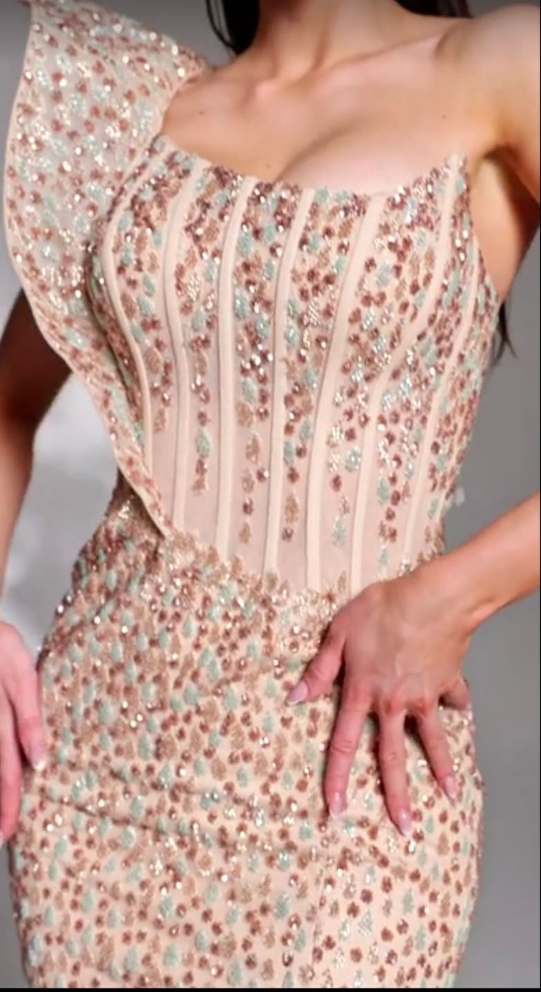 Elegant, glamorous heavily beated lace for special occasions