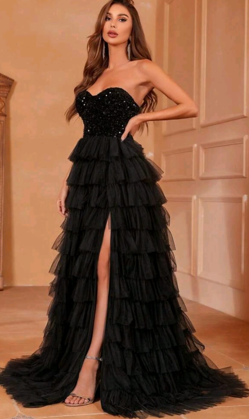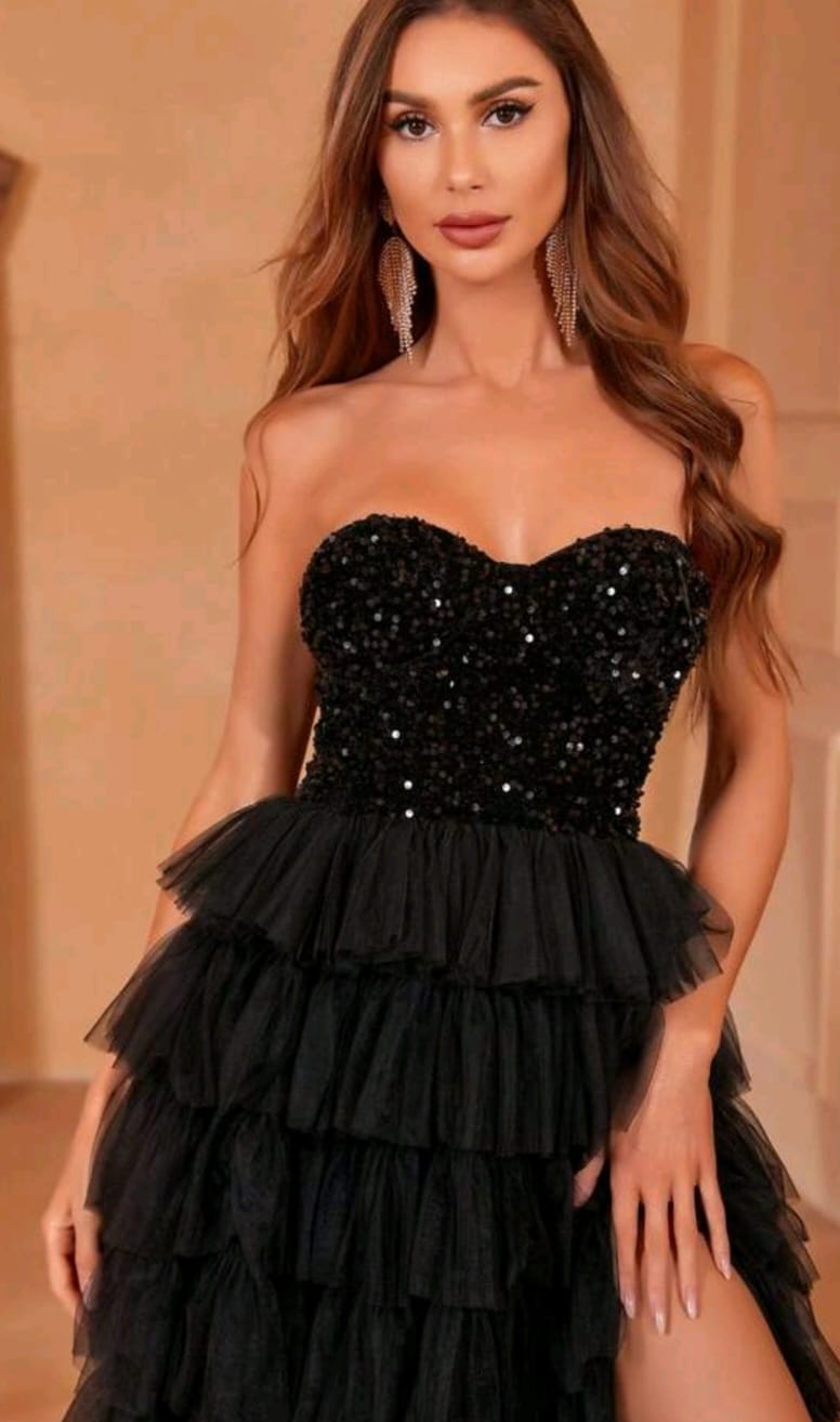 Contrast Sequin mesh Hem dress split thigh tube dress