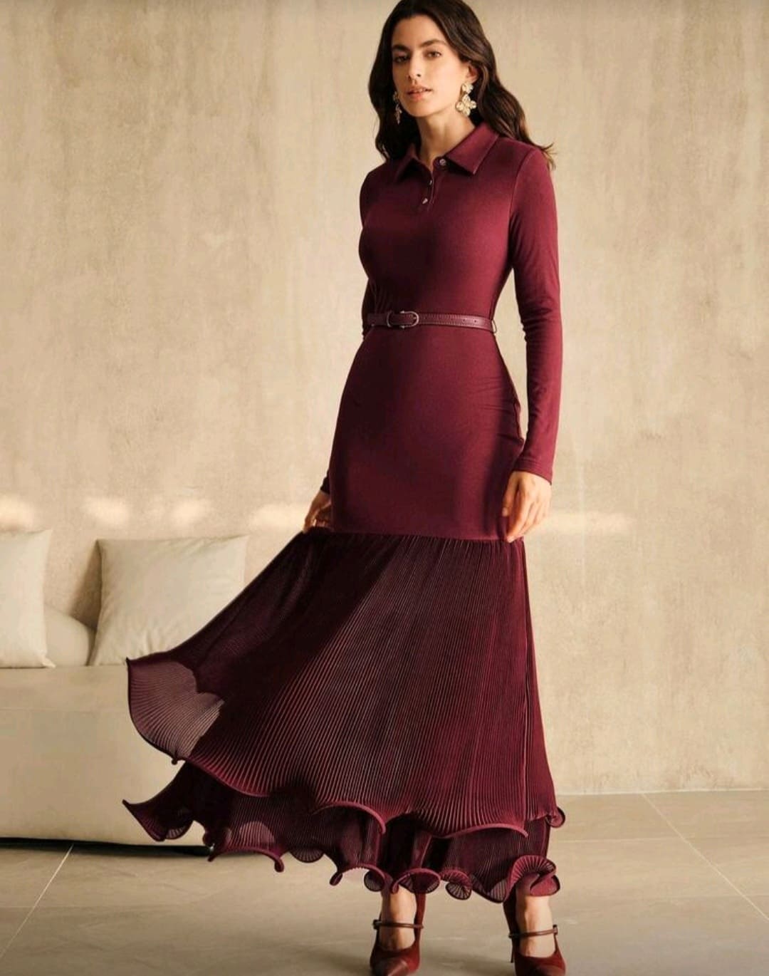 Elegant knit fitted patchwork dress