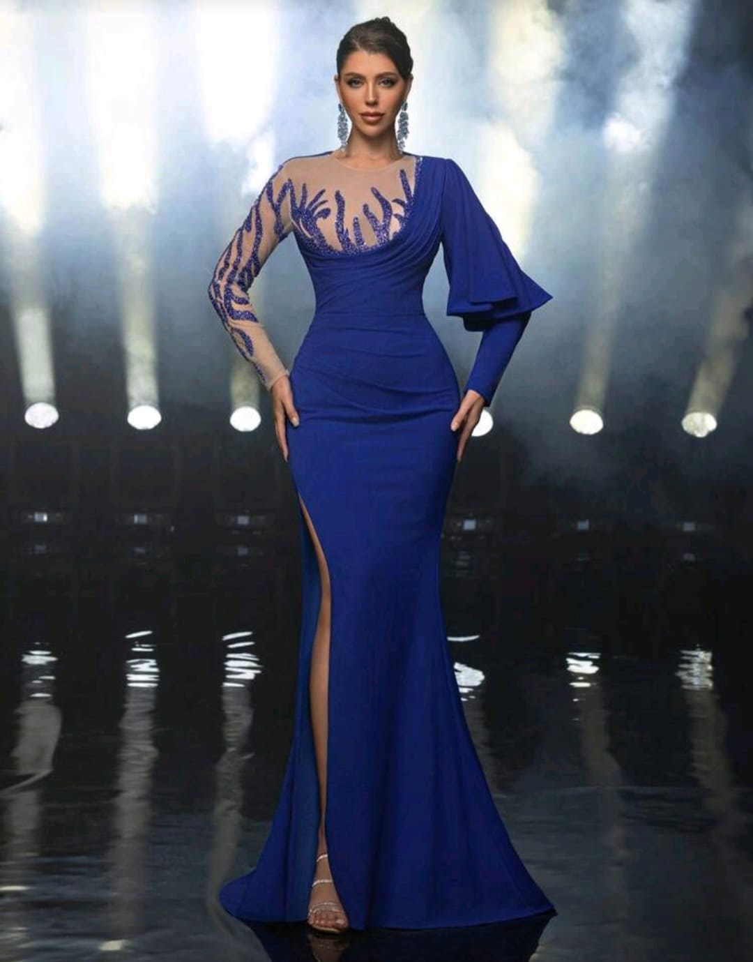 Luxurious knittted long sleeve evening gown
