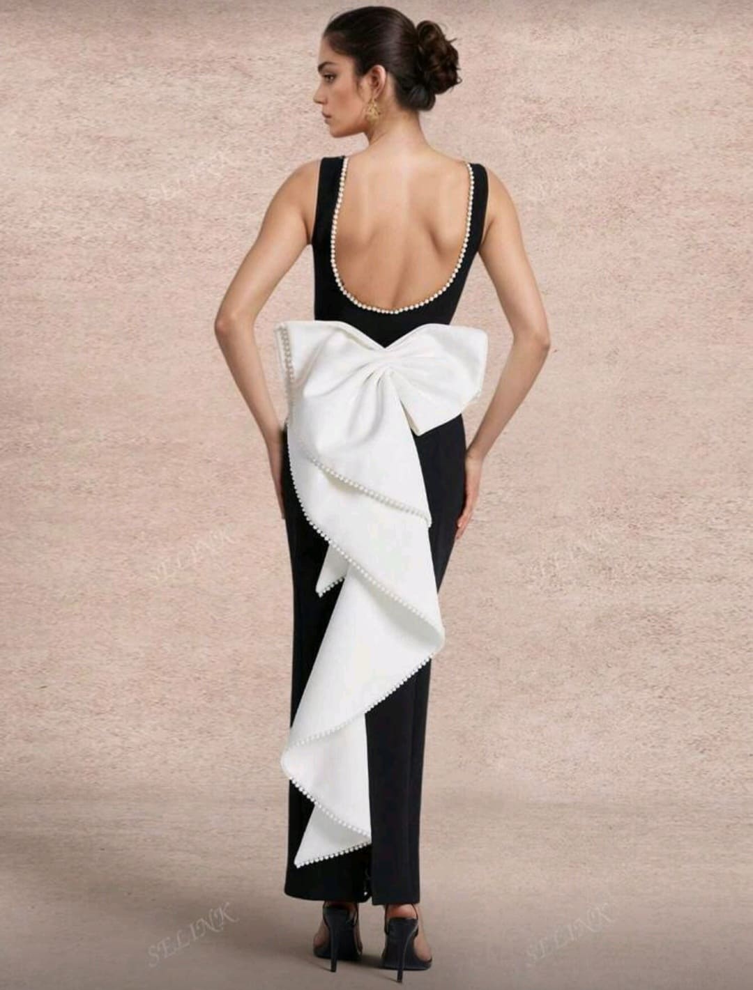 Glamorous evening dress for all occasions with detarchable bow