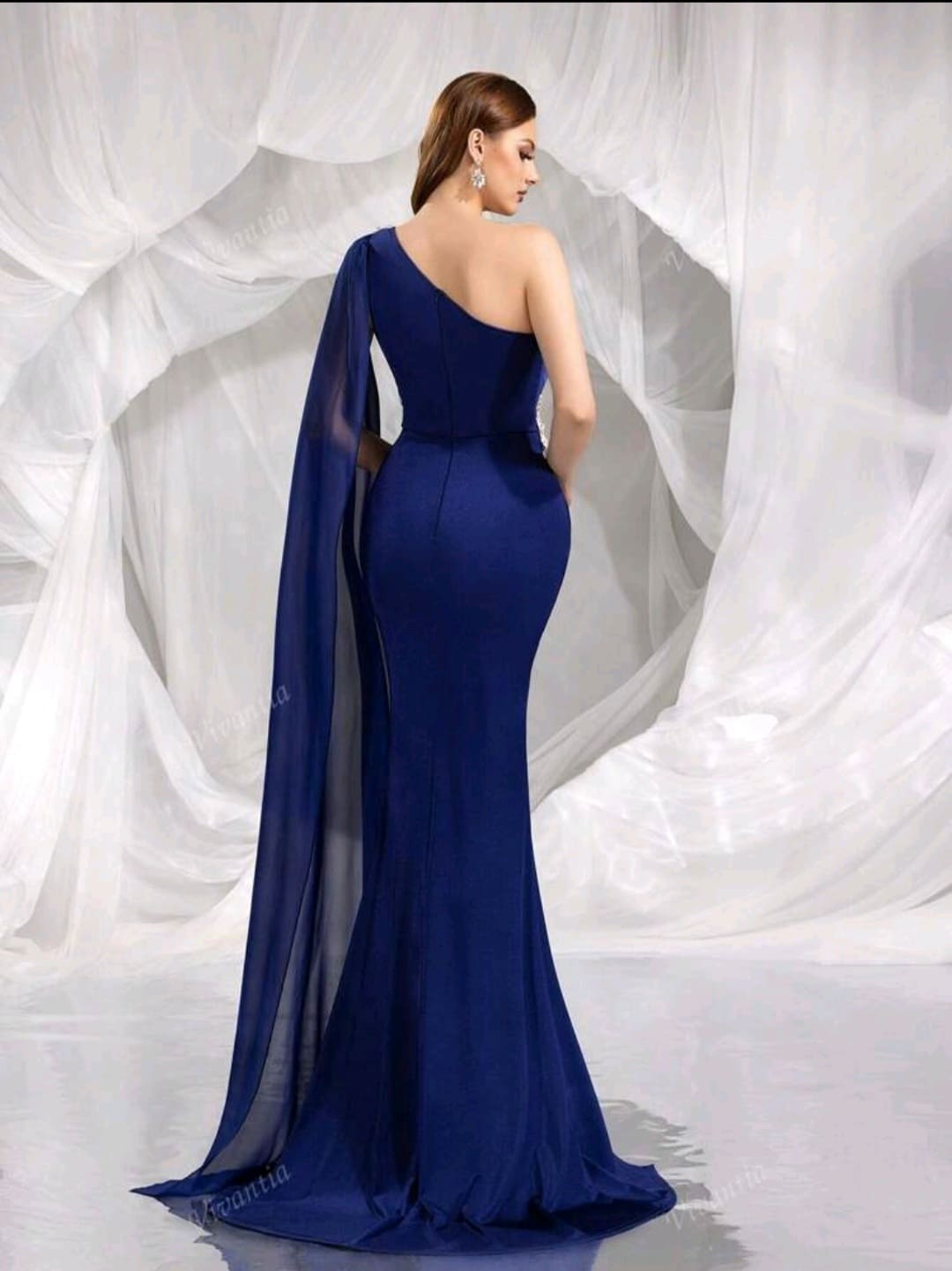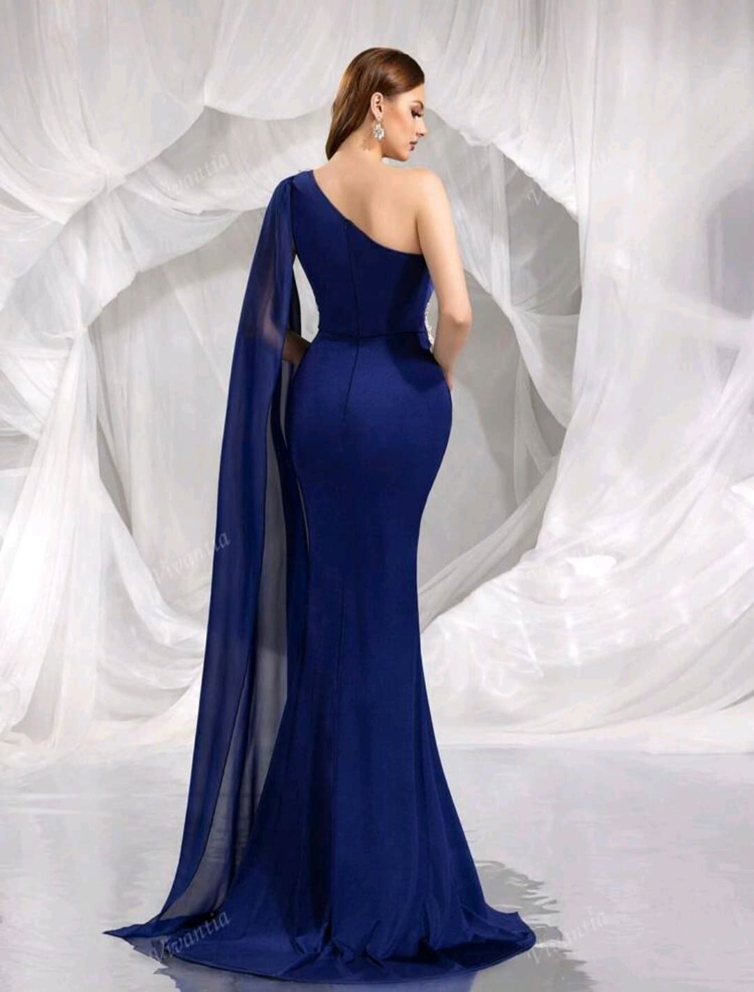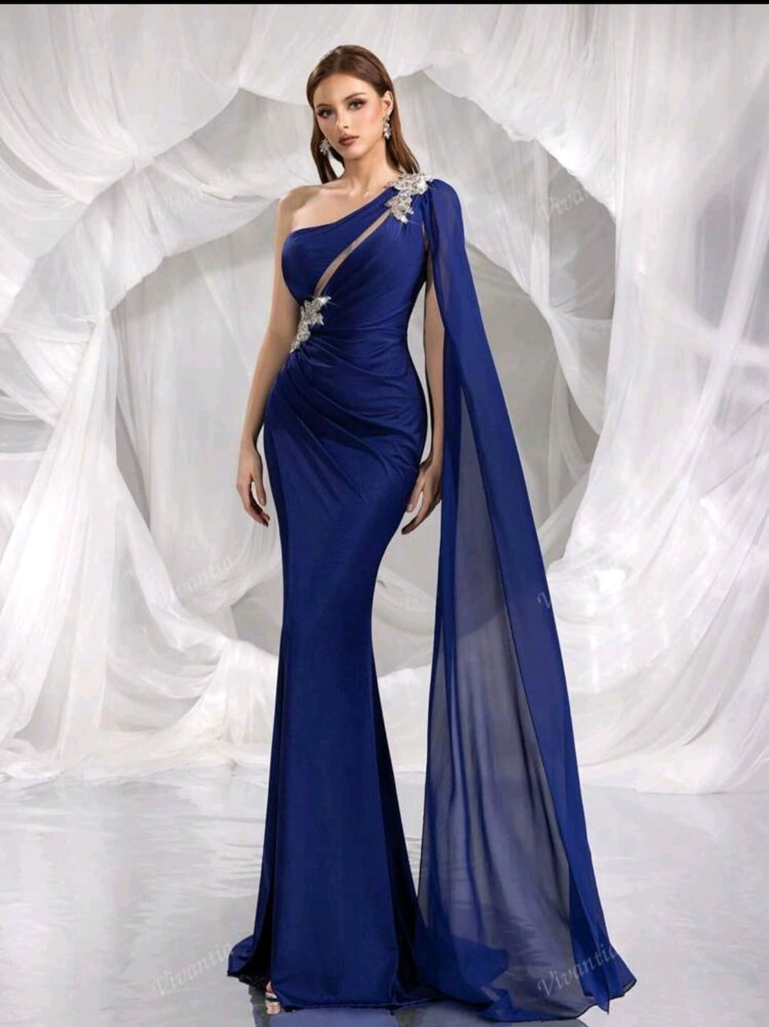 One shoulder split thigh sequin formal dress