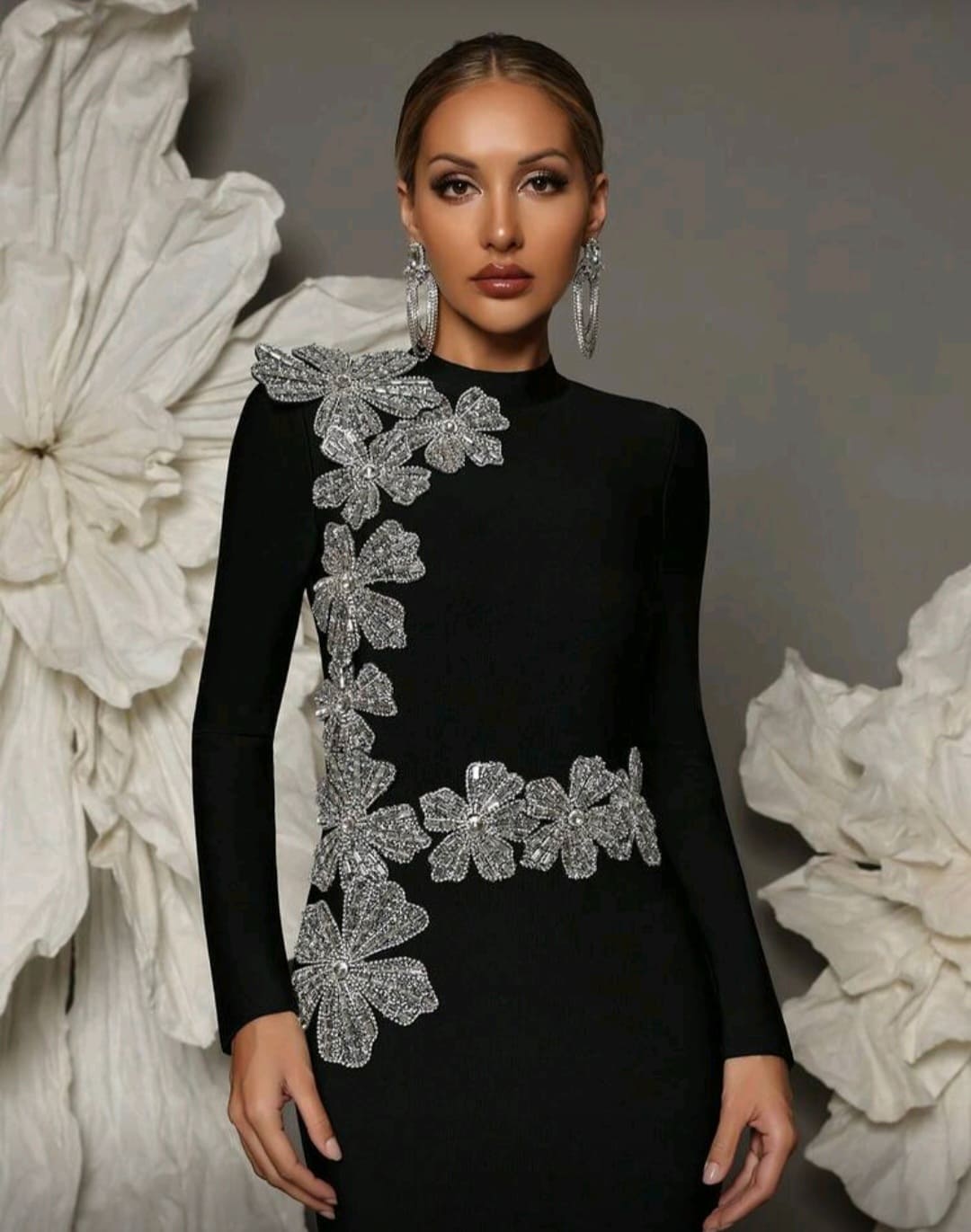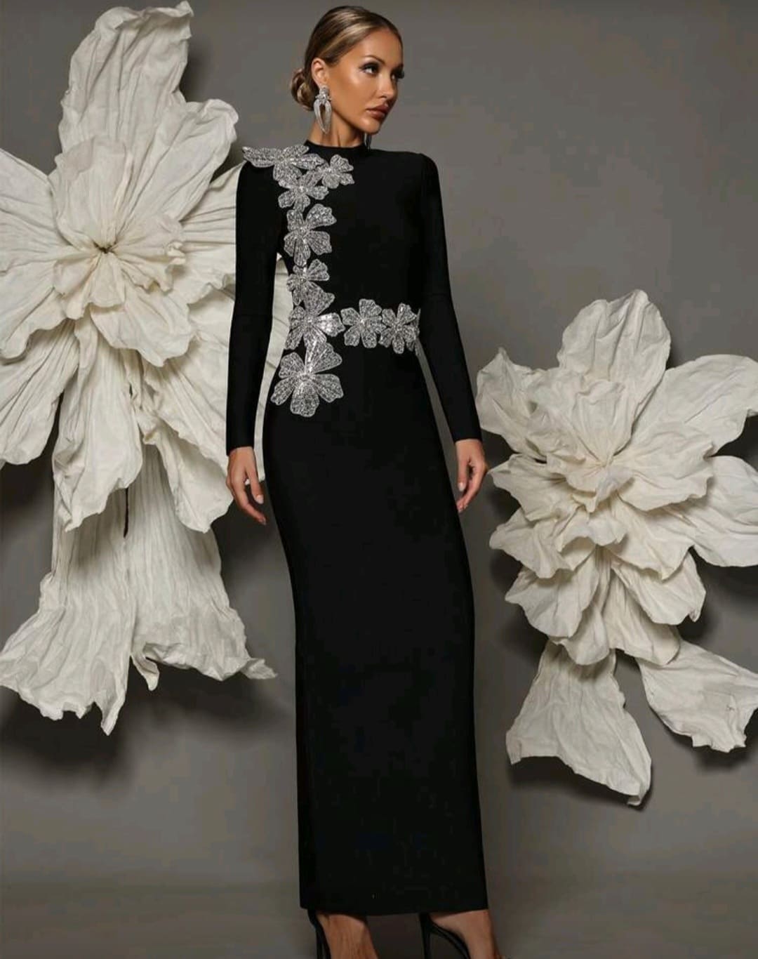 Long sleeve bandage embellished floral dress