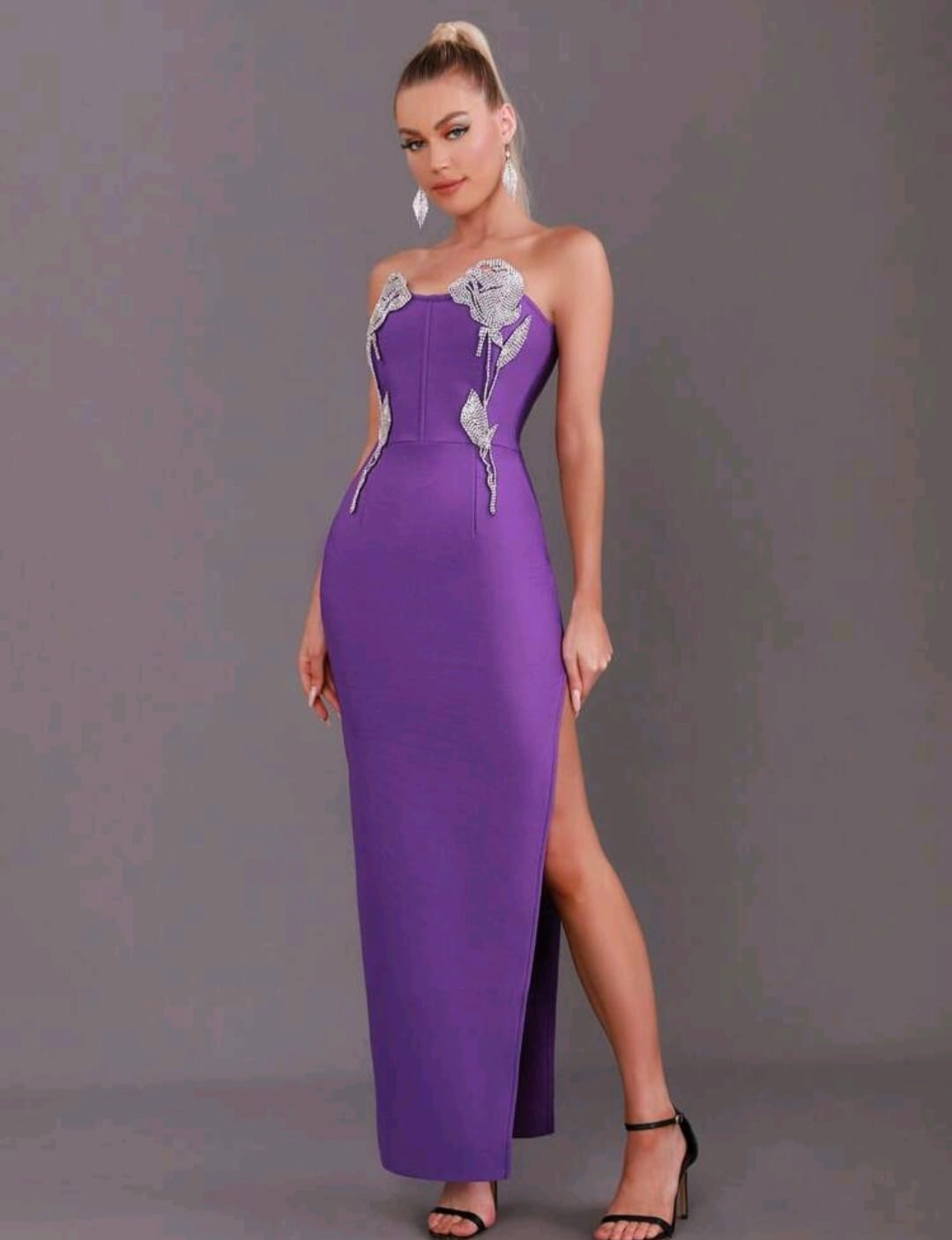 Rhinestones detail split thigh dress