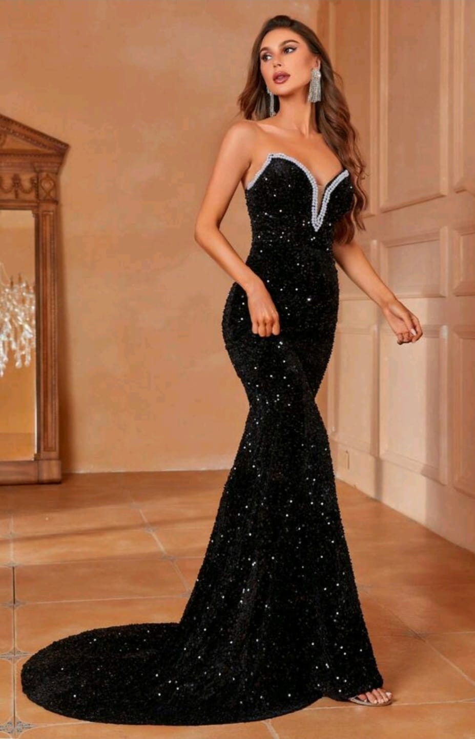 Contrast sequin mermaid Hem tube formal dress