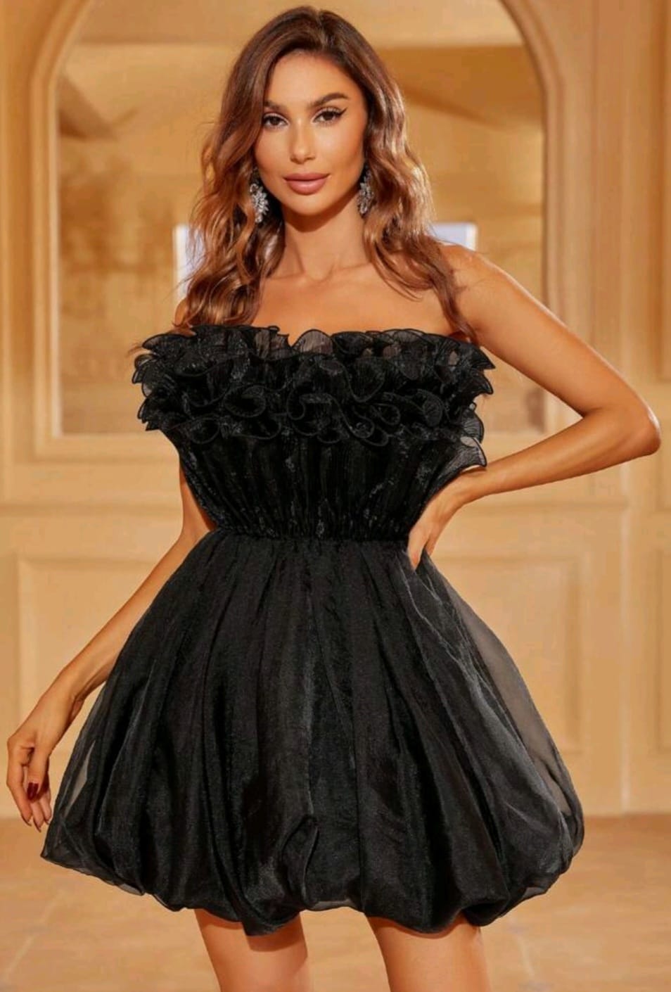 Ruffle trim mesh tube party gown