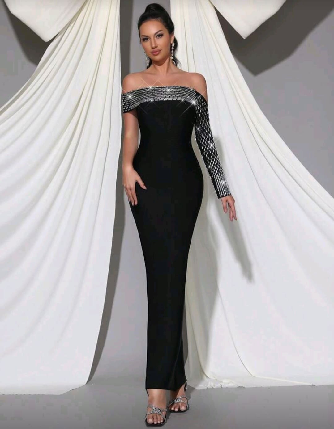 Bandage one shoulder long sleeve gown