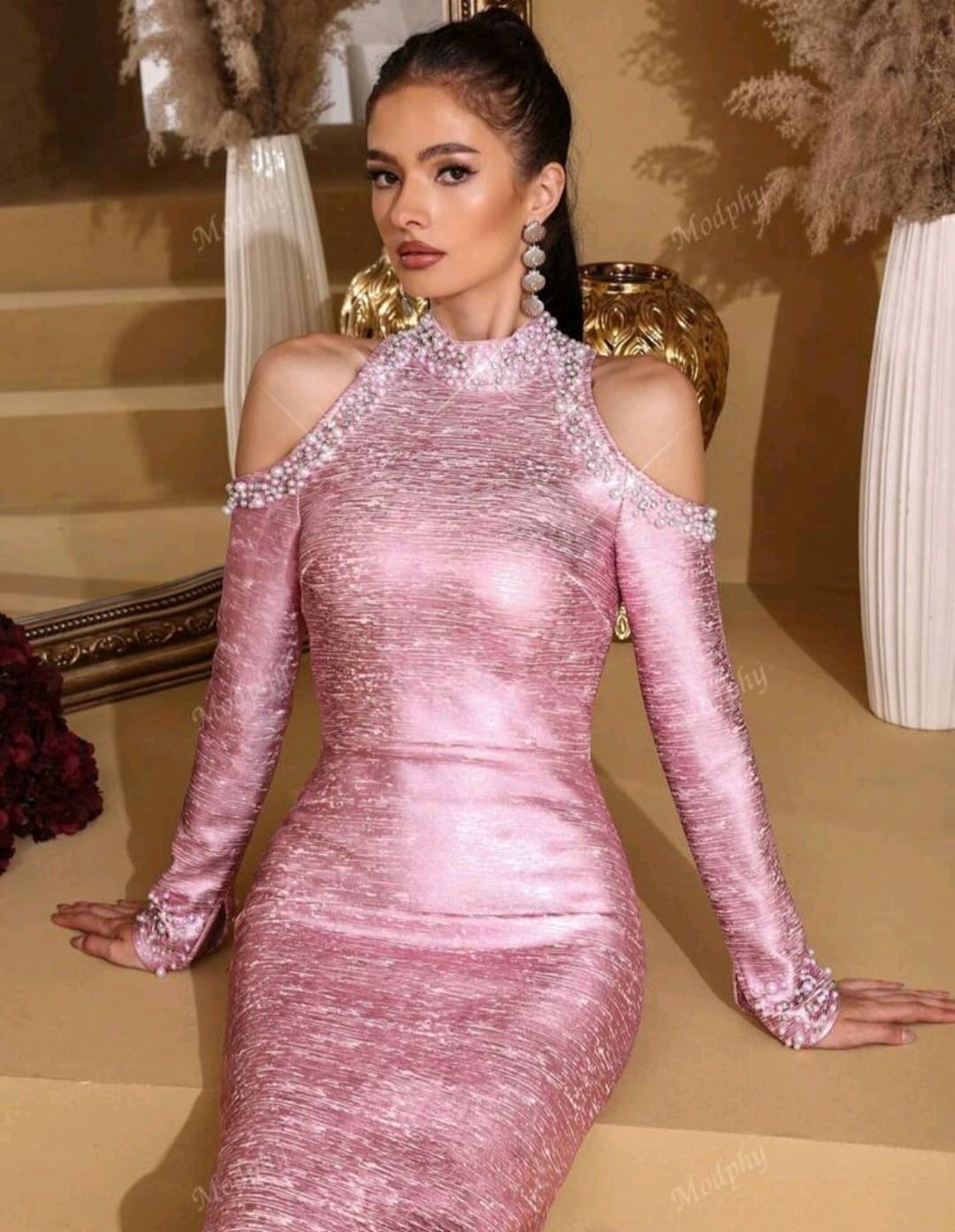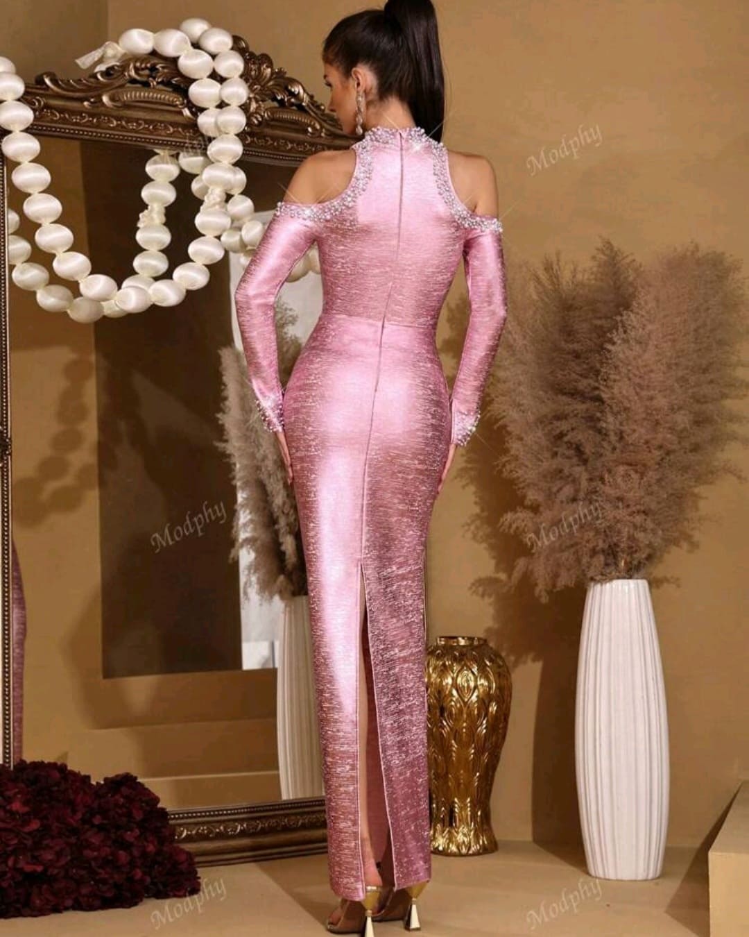 Long sleeve bandage evening dress