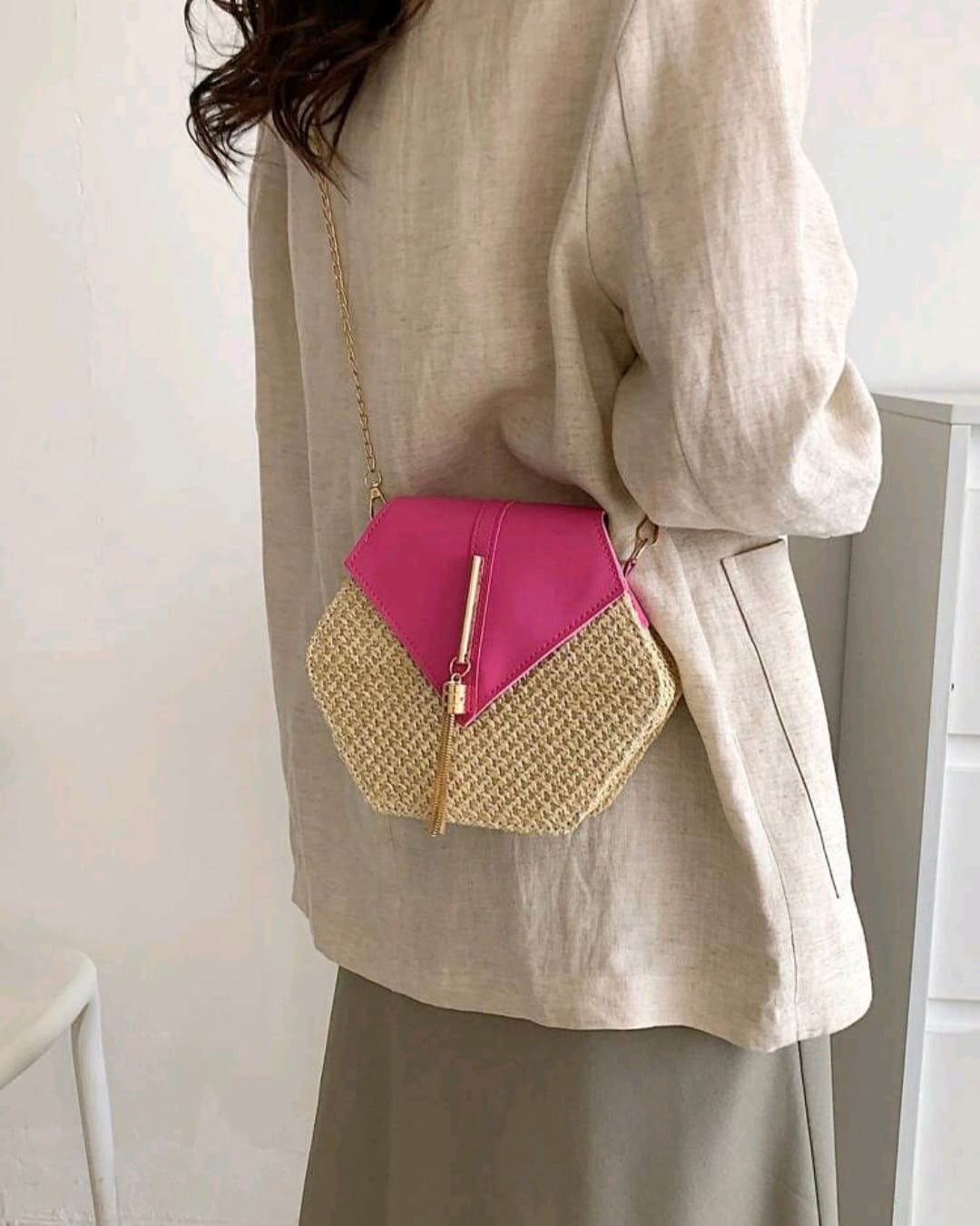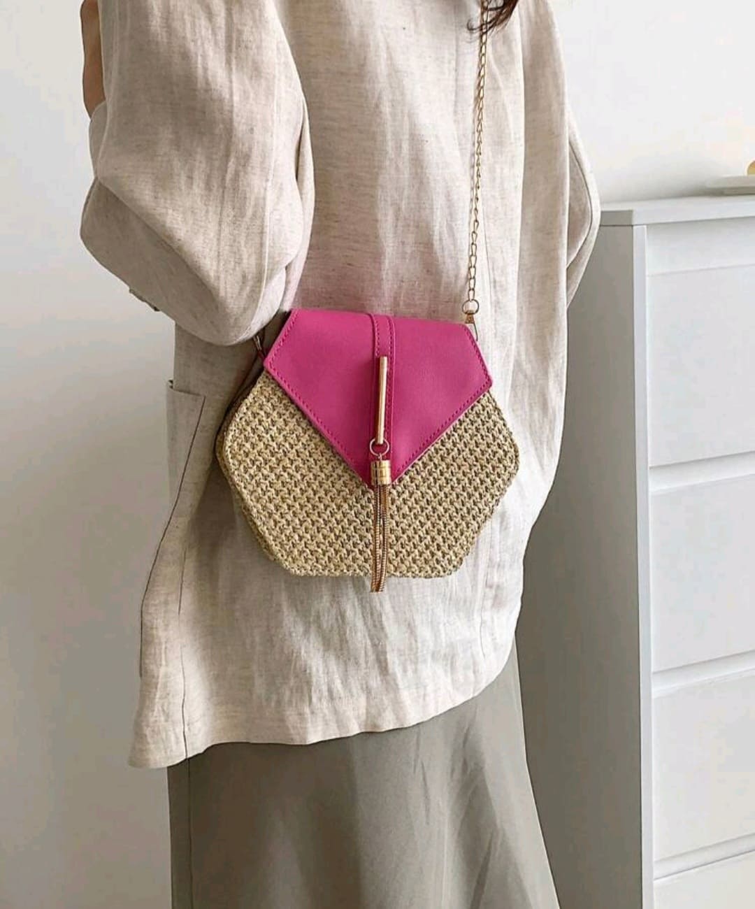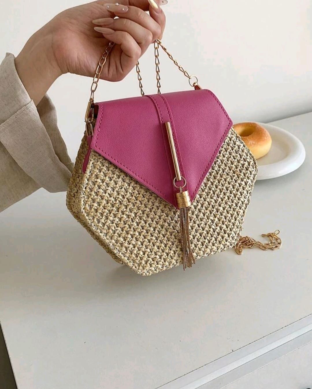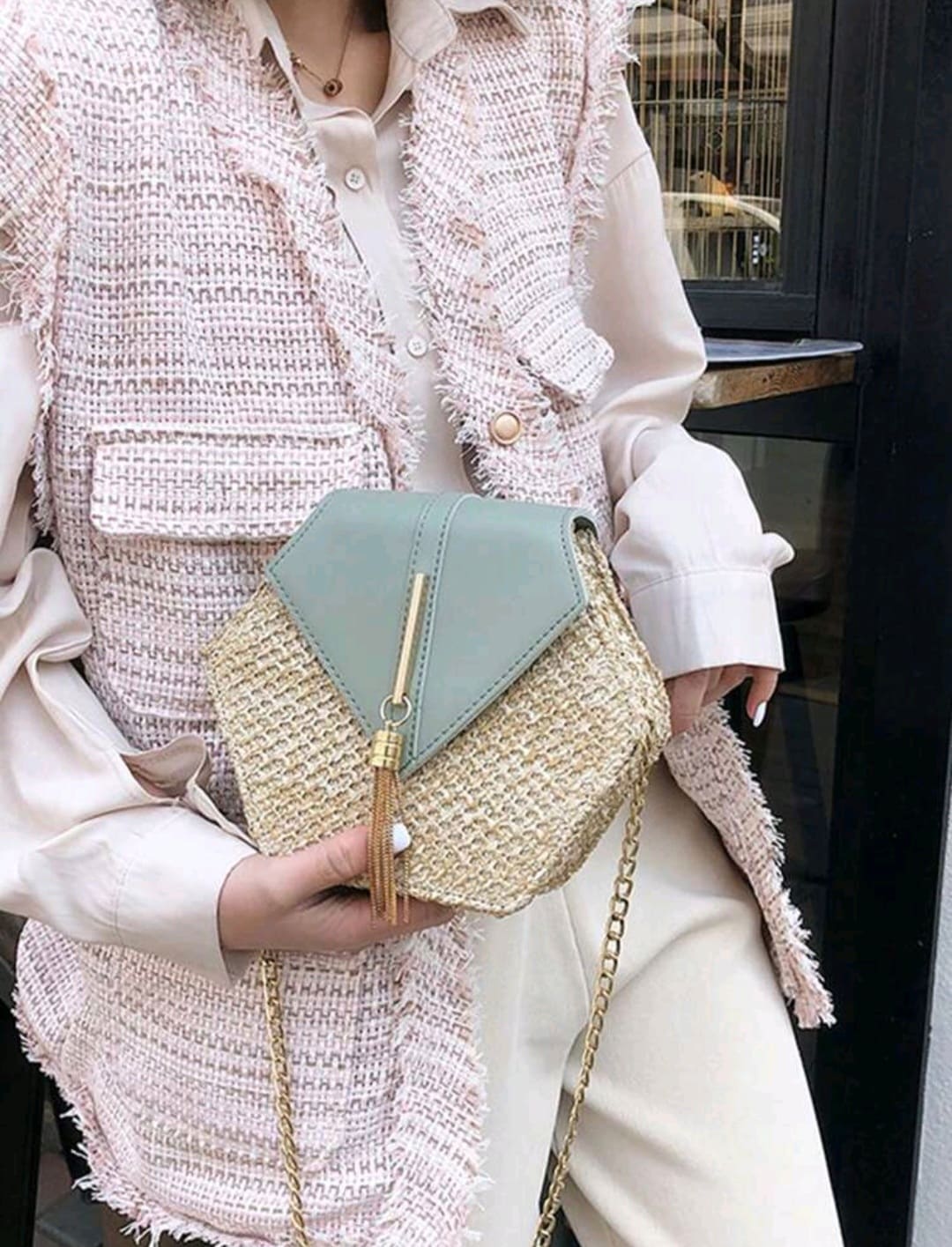 Matted ,chain hand clutch for summer