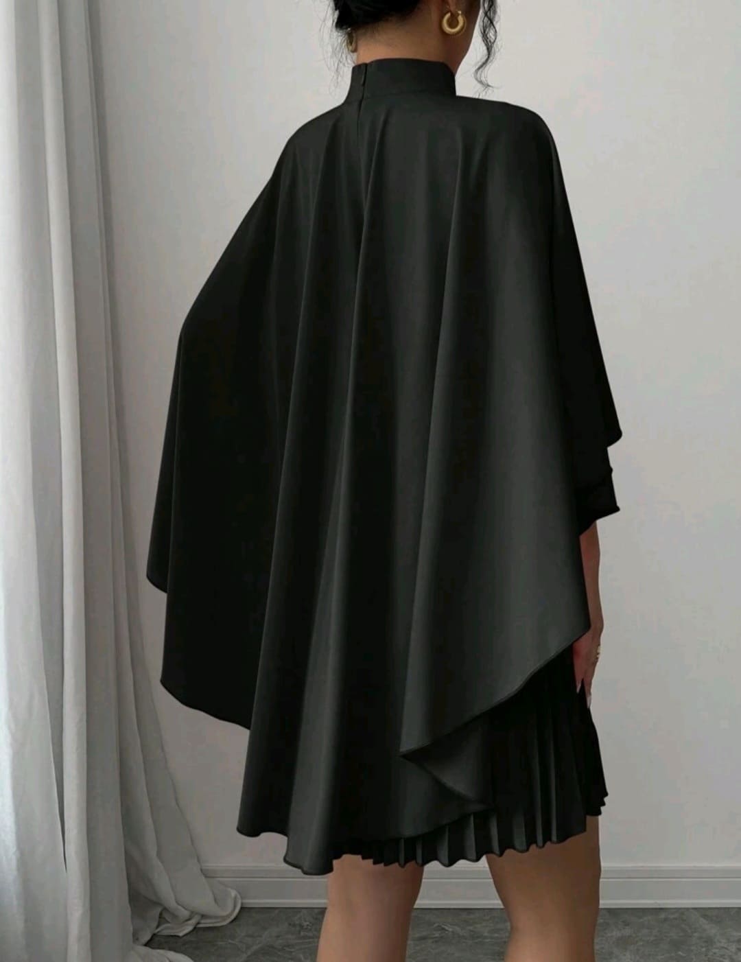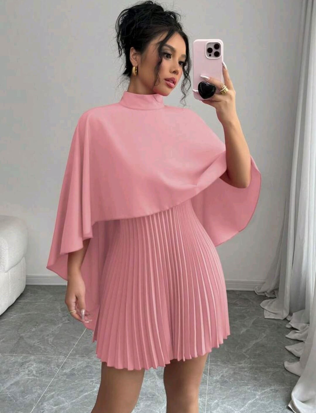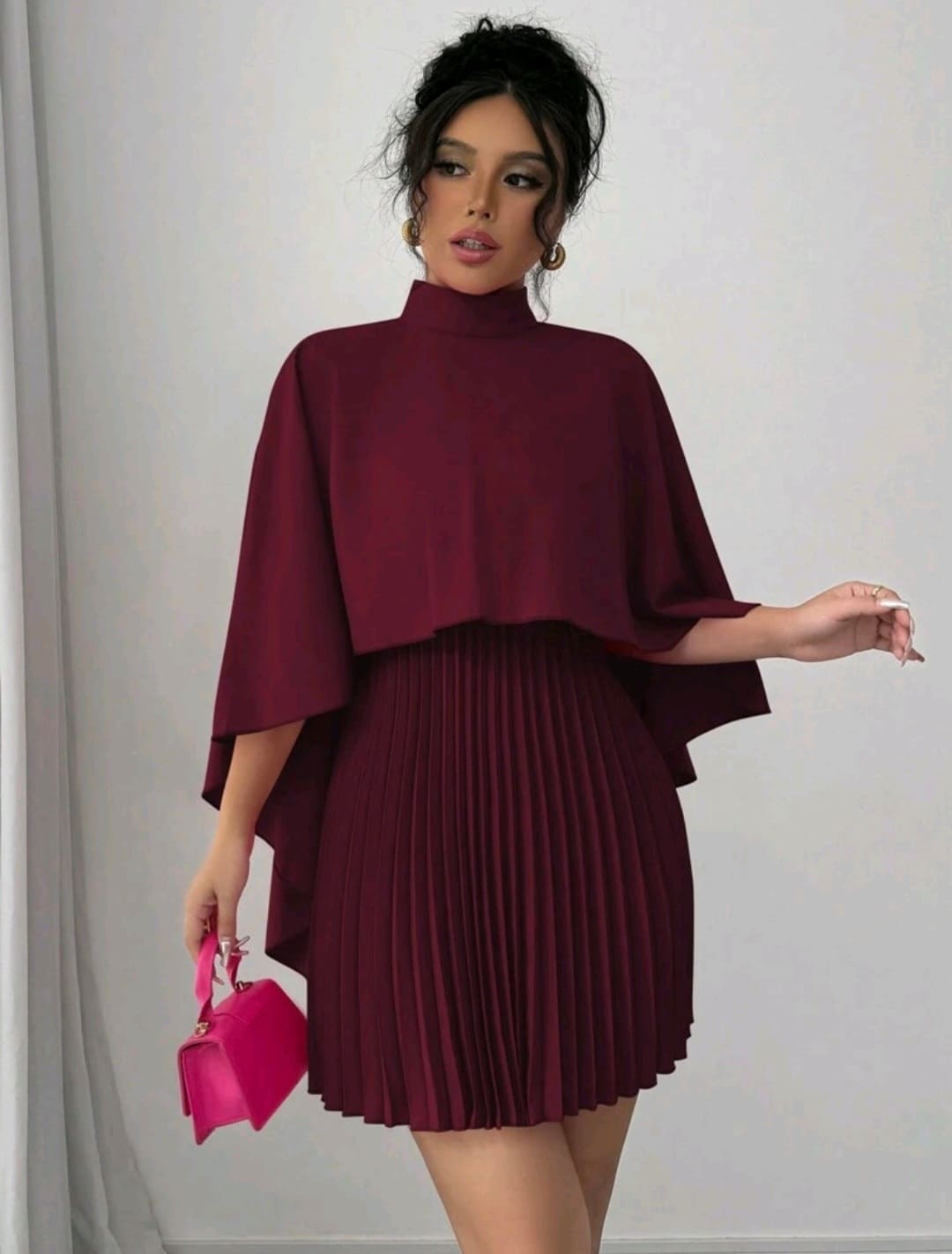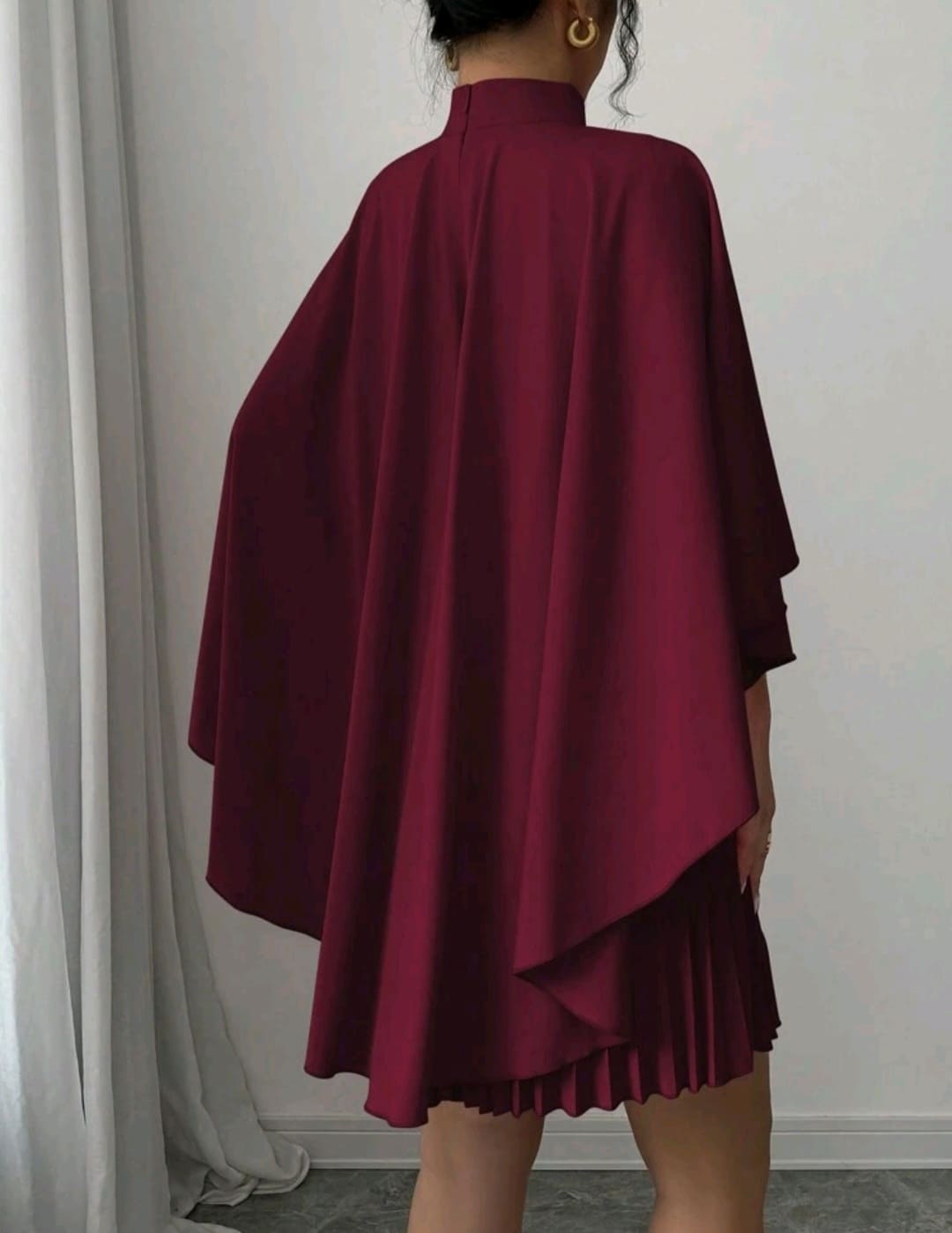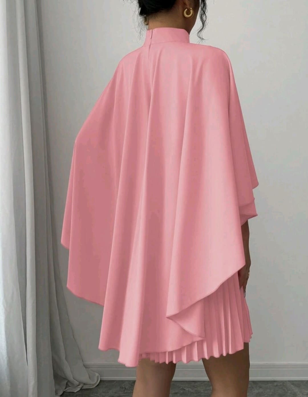 Cloak pleated mock round neck dress