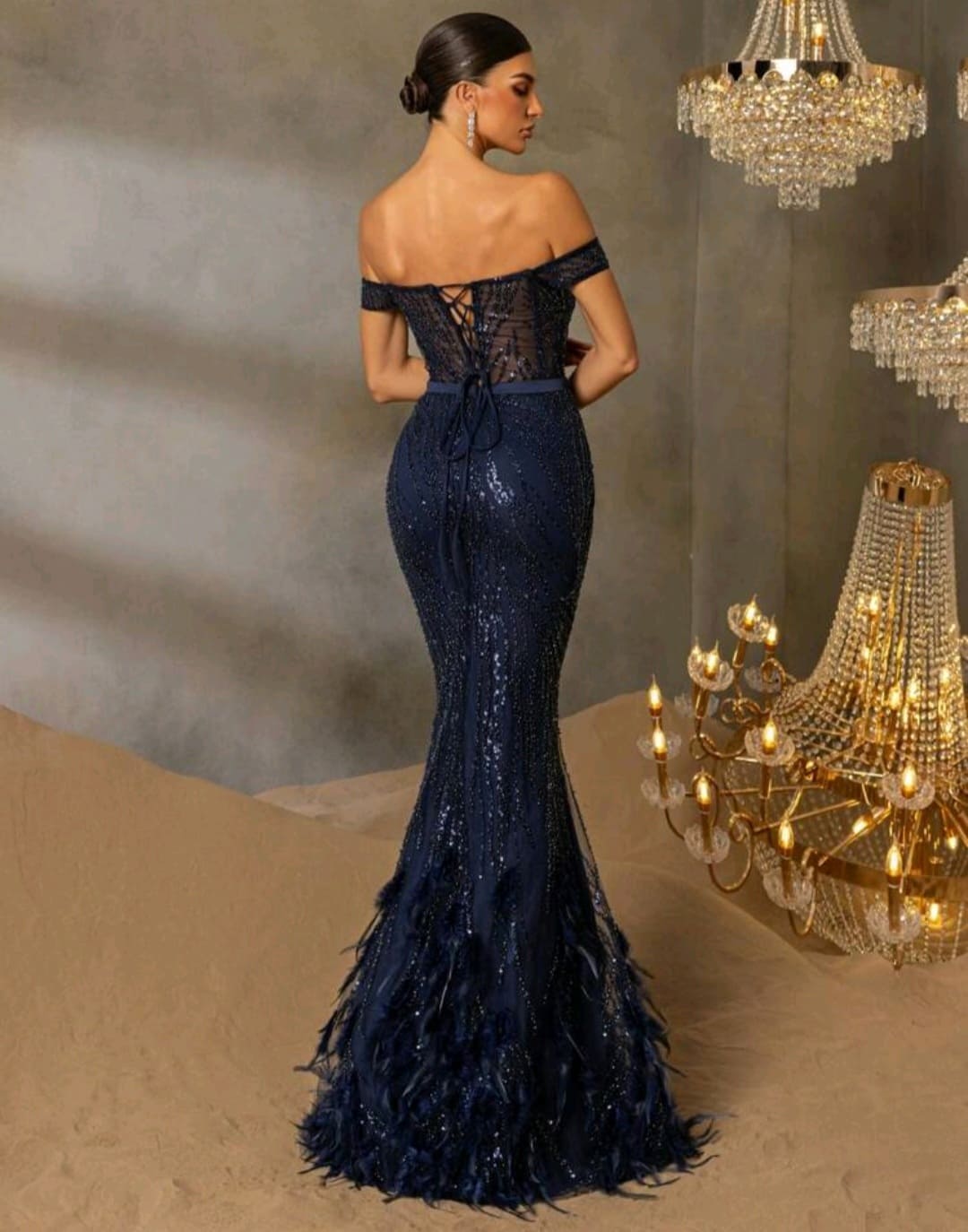 Luxurious off shoulder evening gown