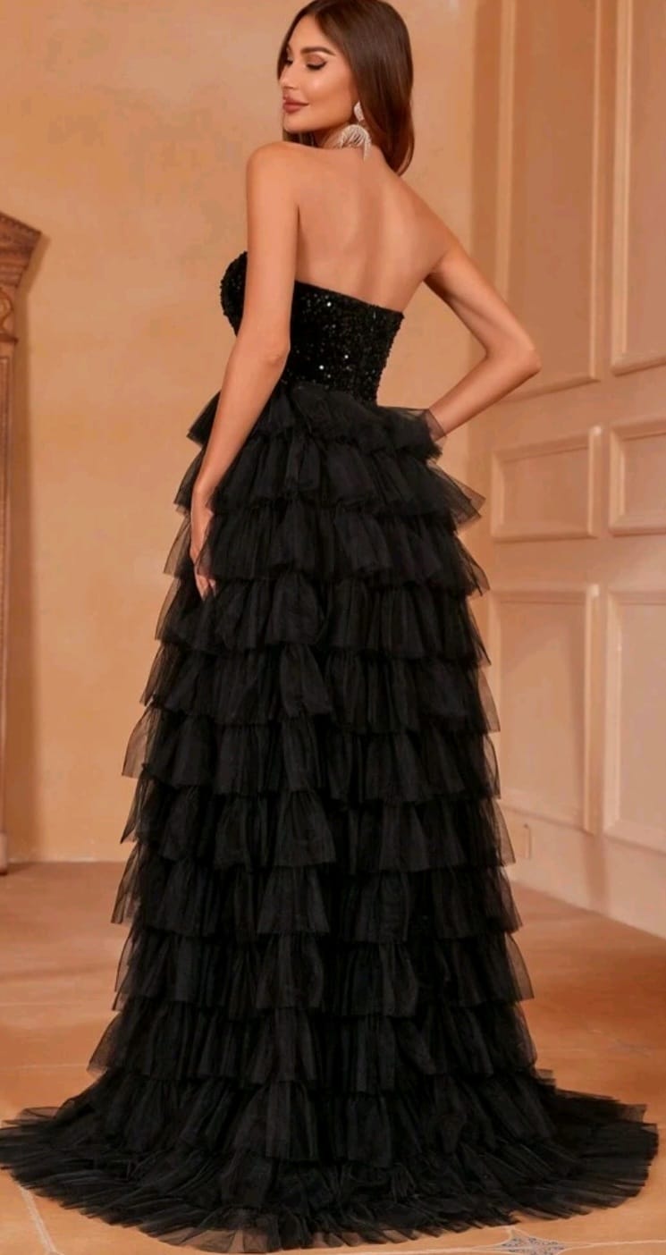 Contrast Sequin mesh Hem dress split thigh tube dress