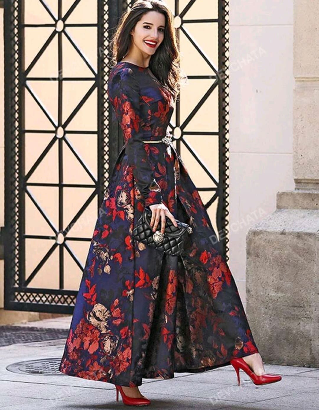 Formal print dress without bellt for office and other gatherings