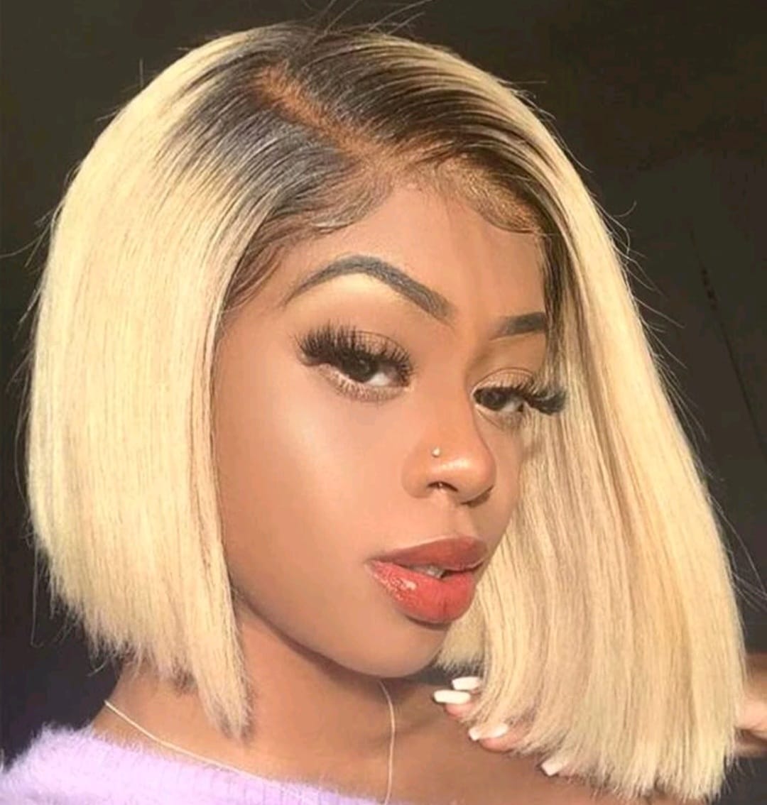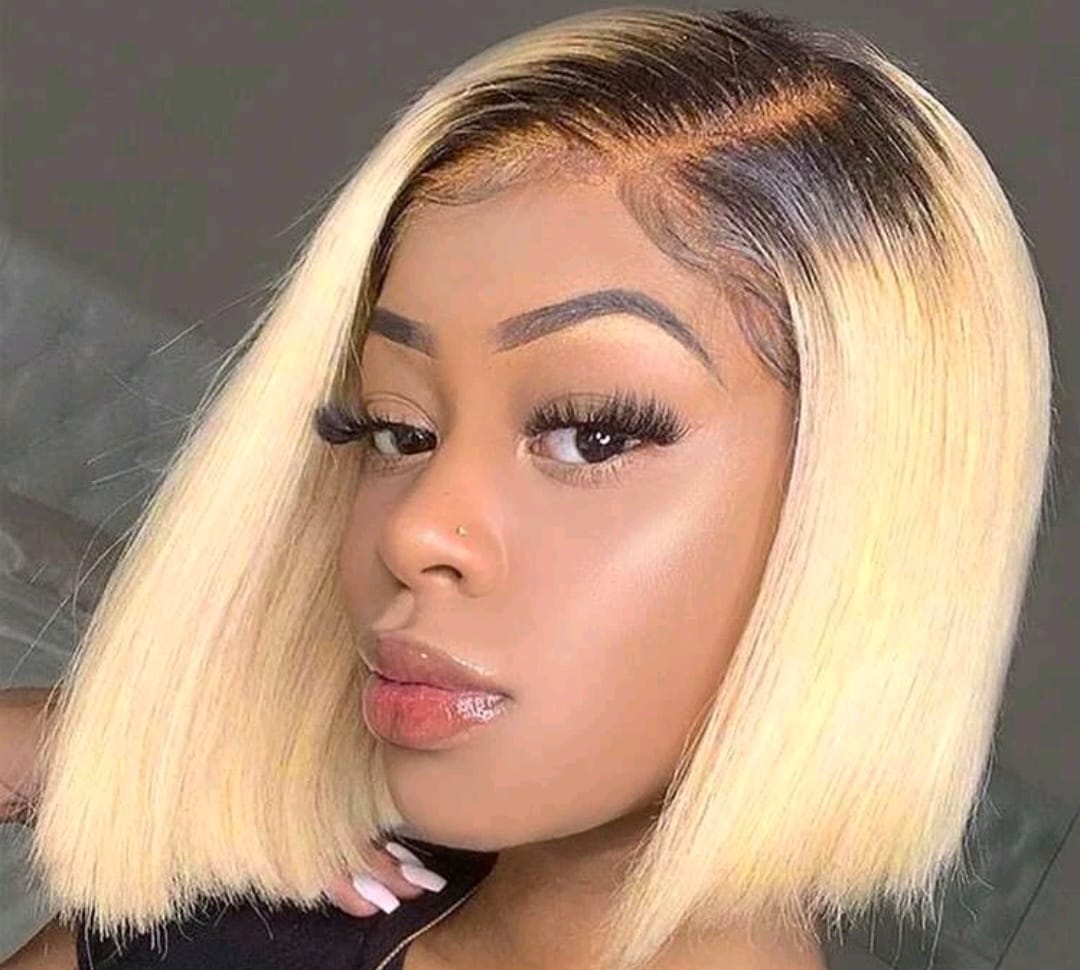 Transparent straight bob 13*4 frontal lace ombre honey blonde bob wig