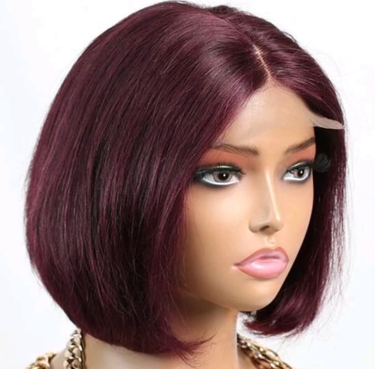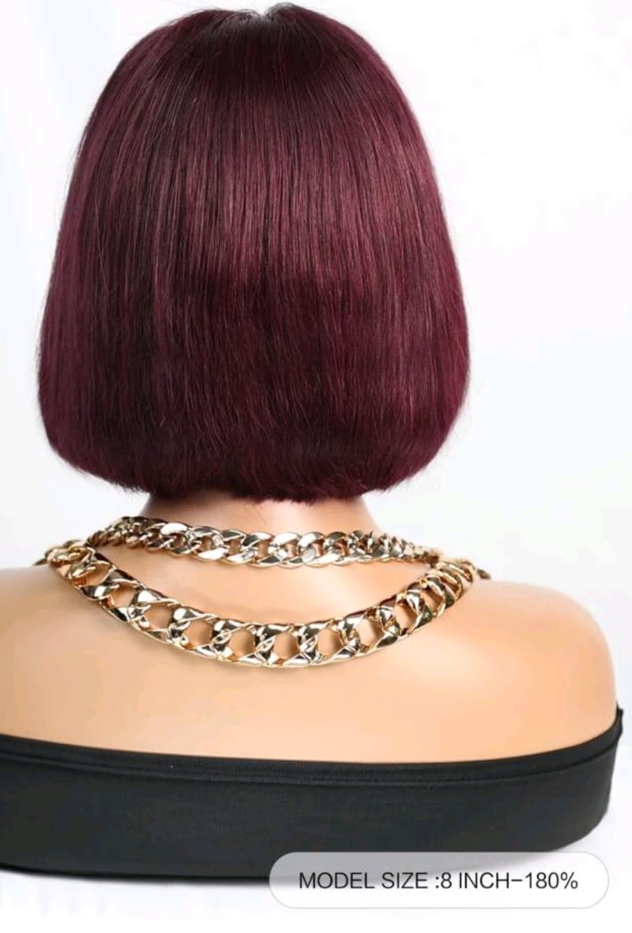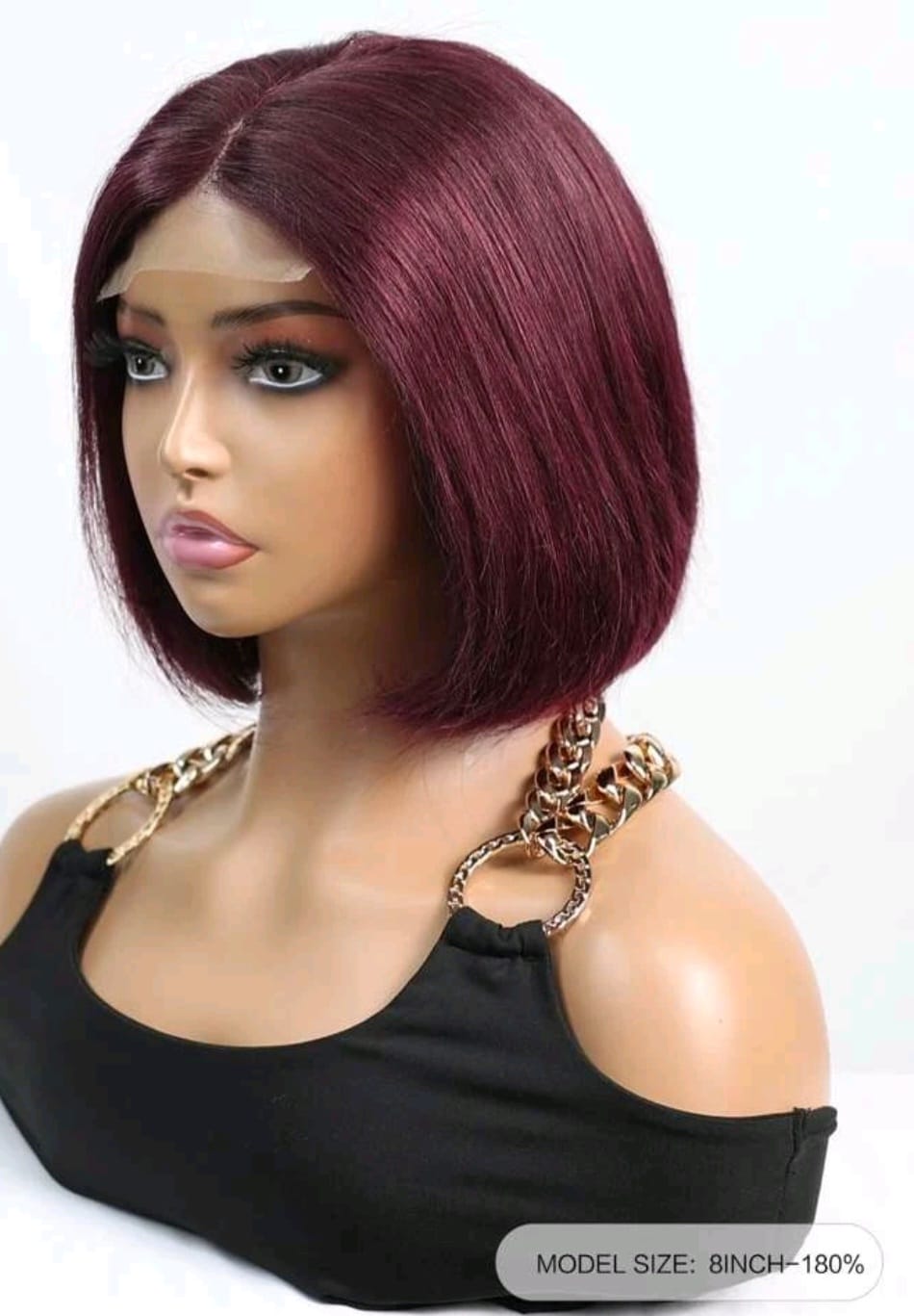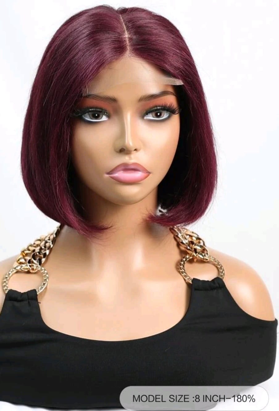 Transparent lace burgundy short straight bob 4*4 closure wig 150%-180% density