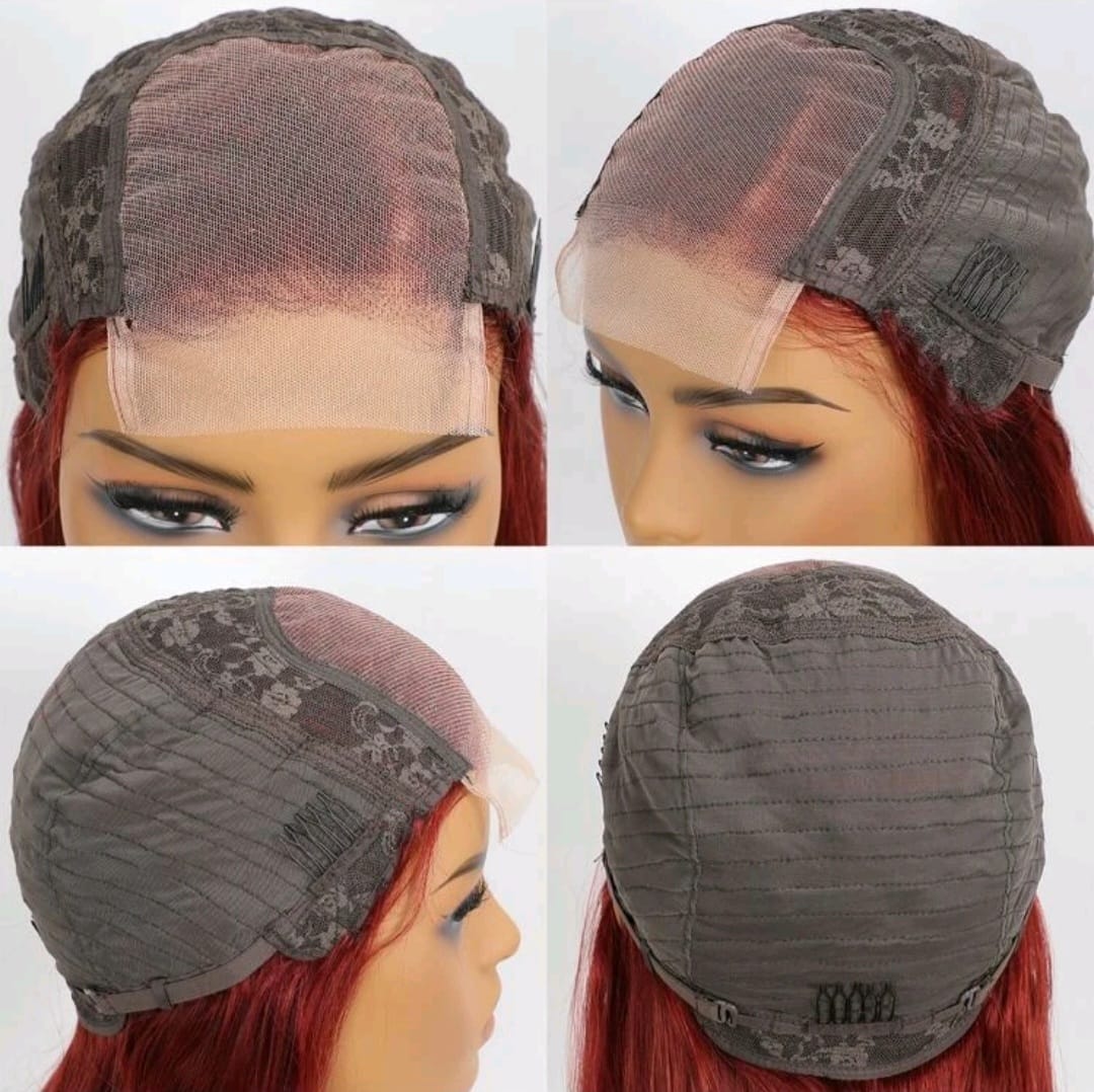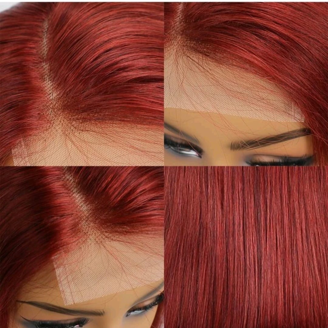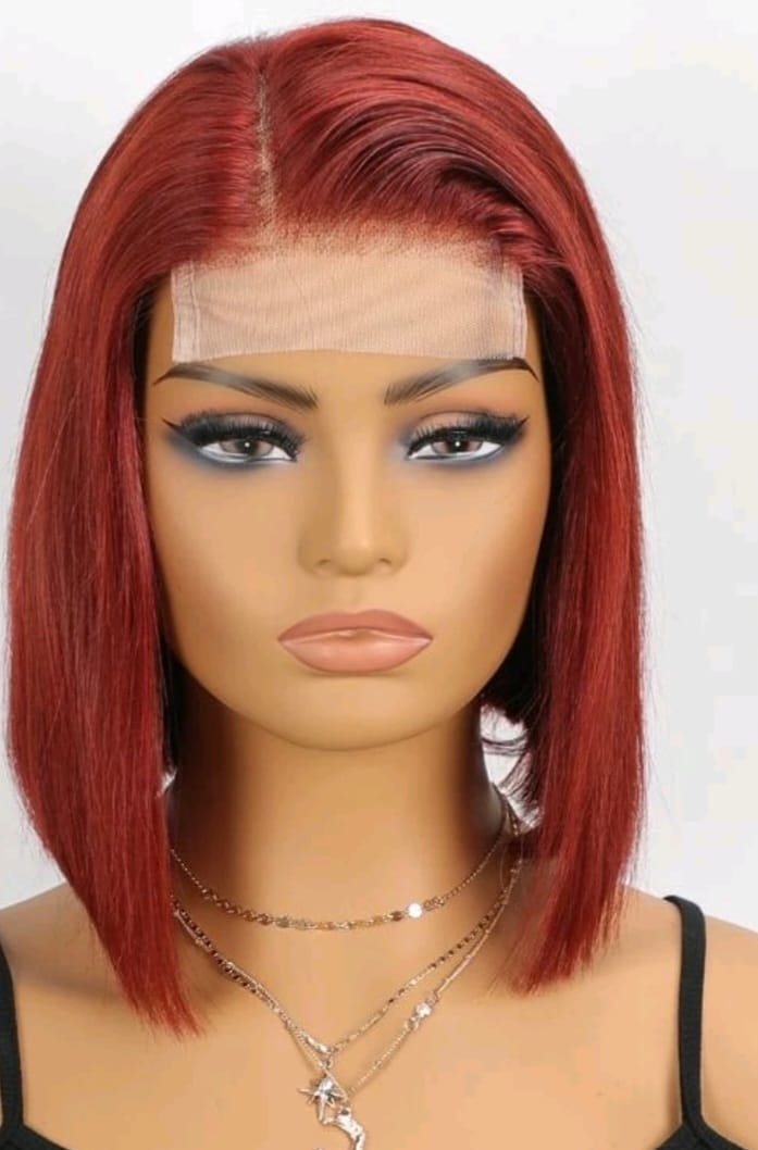 Bone Straight 4*4 transparent Swiss lace closure bob short human hair wig bleachedknots pre plucked Remy redish