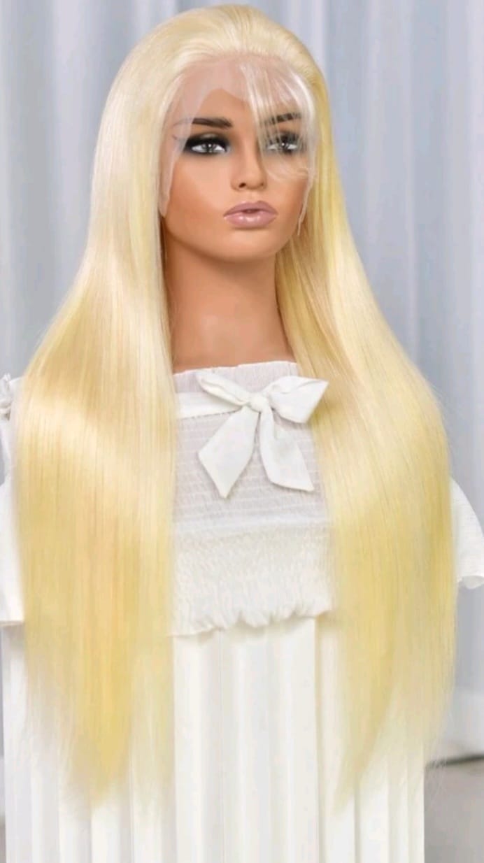 613 blonde straight 13*4 lace front wig pre plucked with baby human hair human hair wig