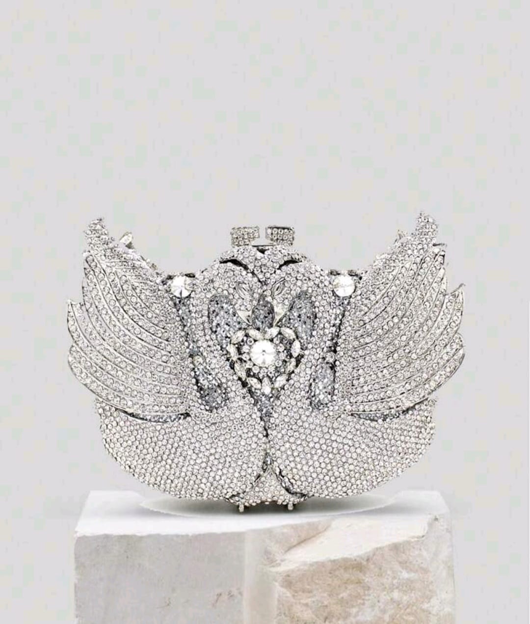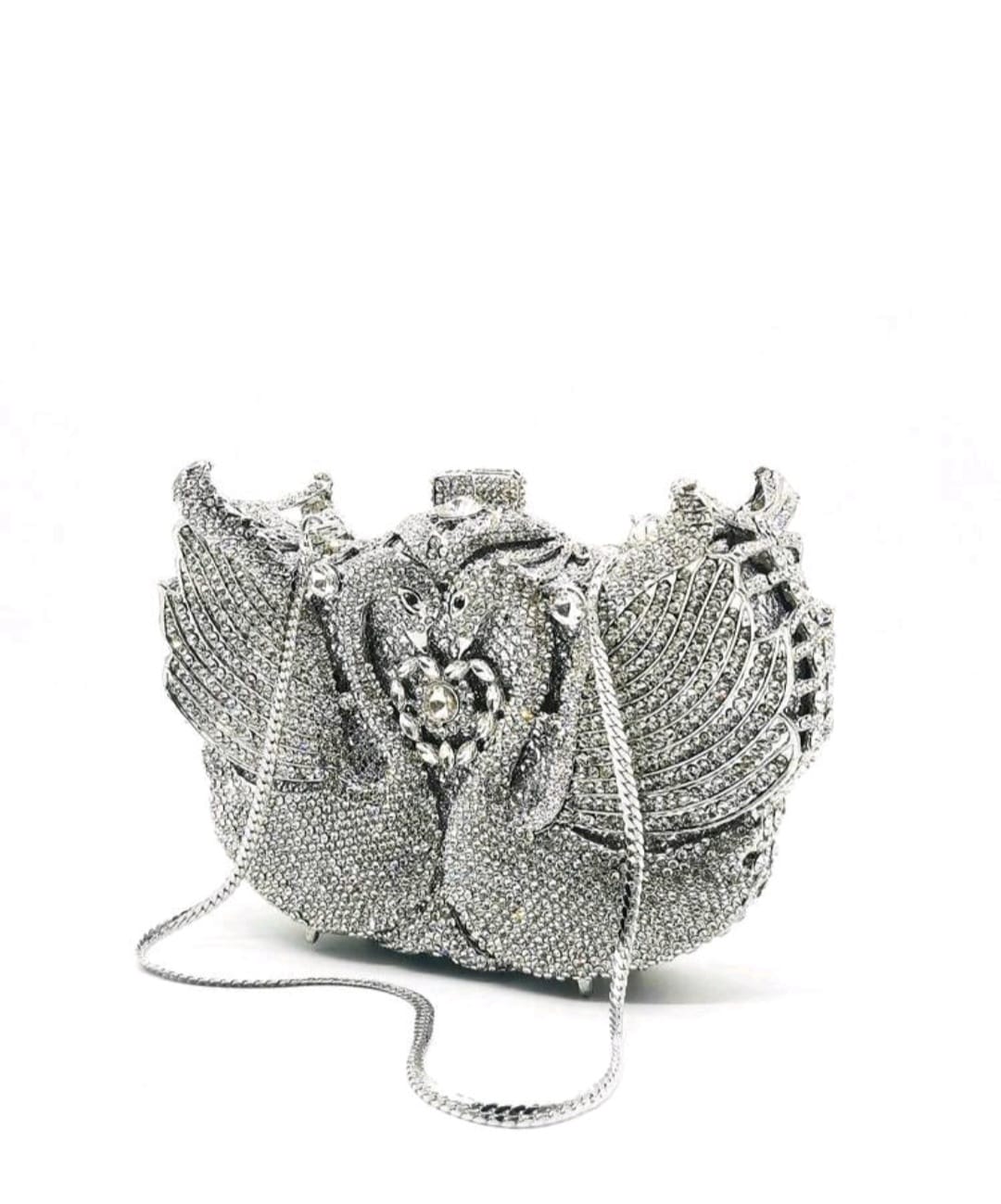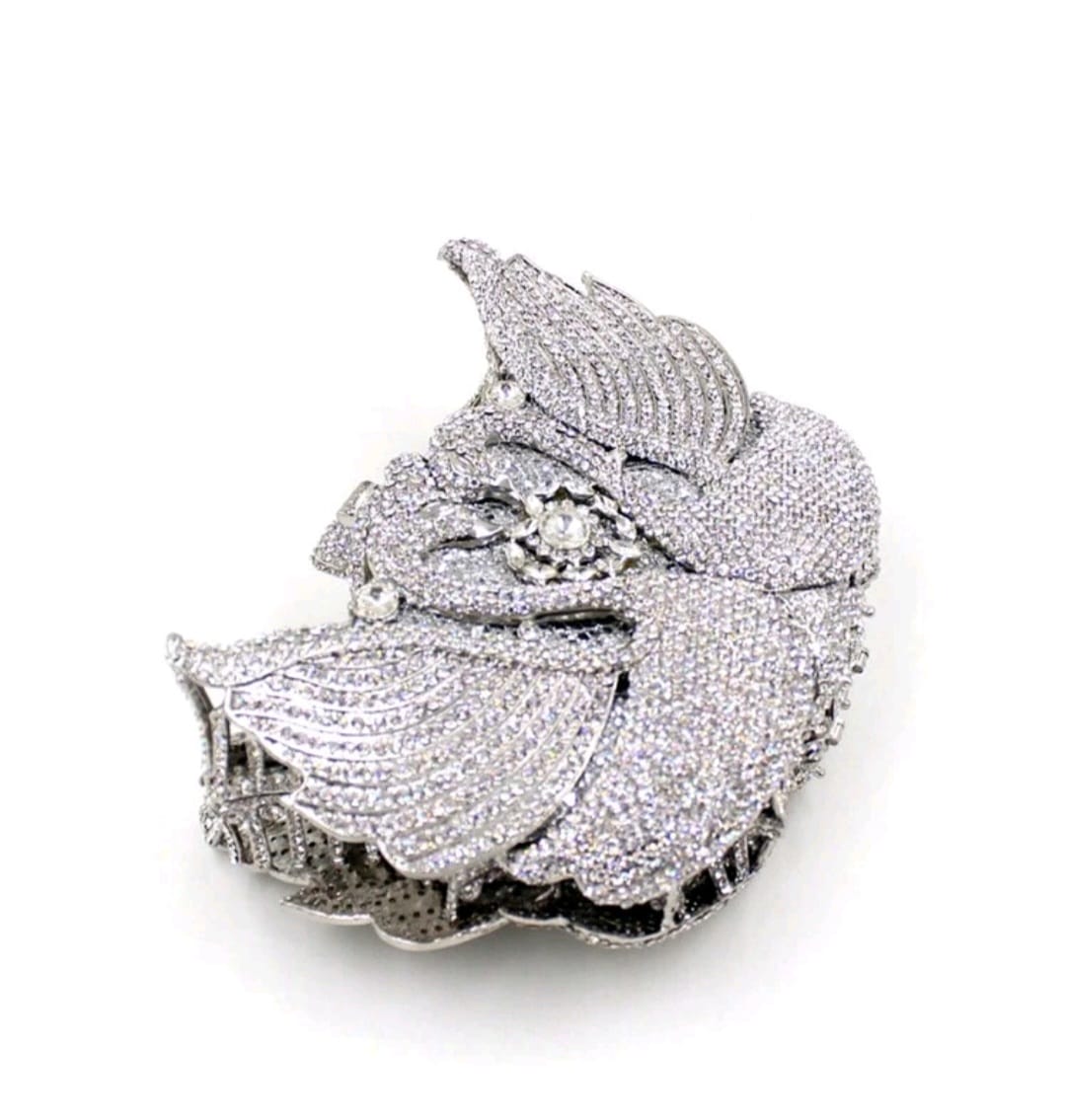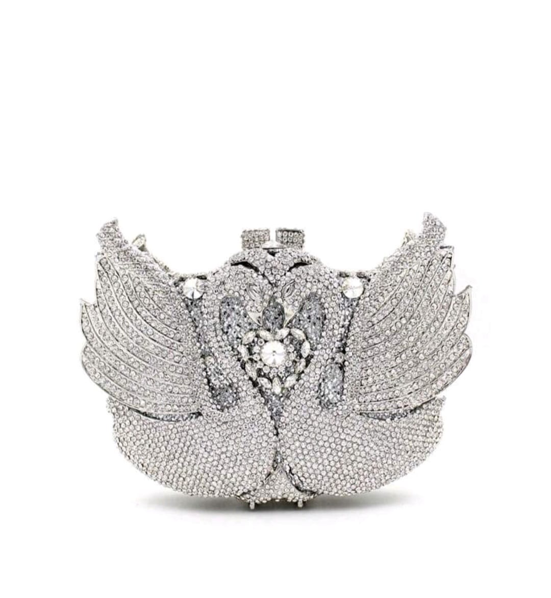 Luxury Silver swan clutch crystal evening bag