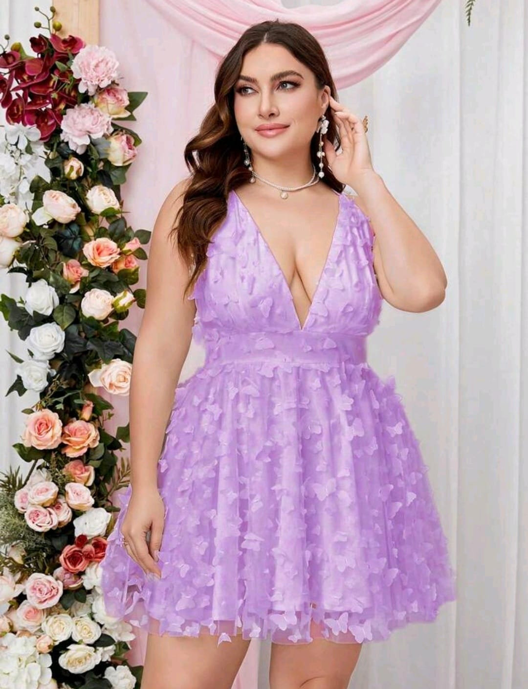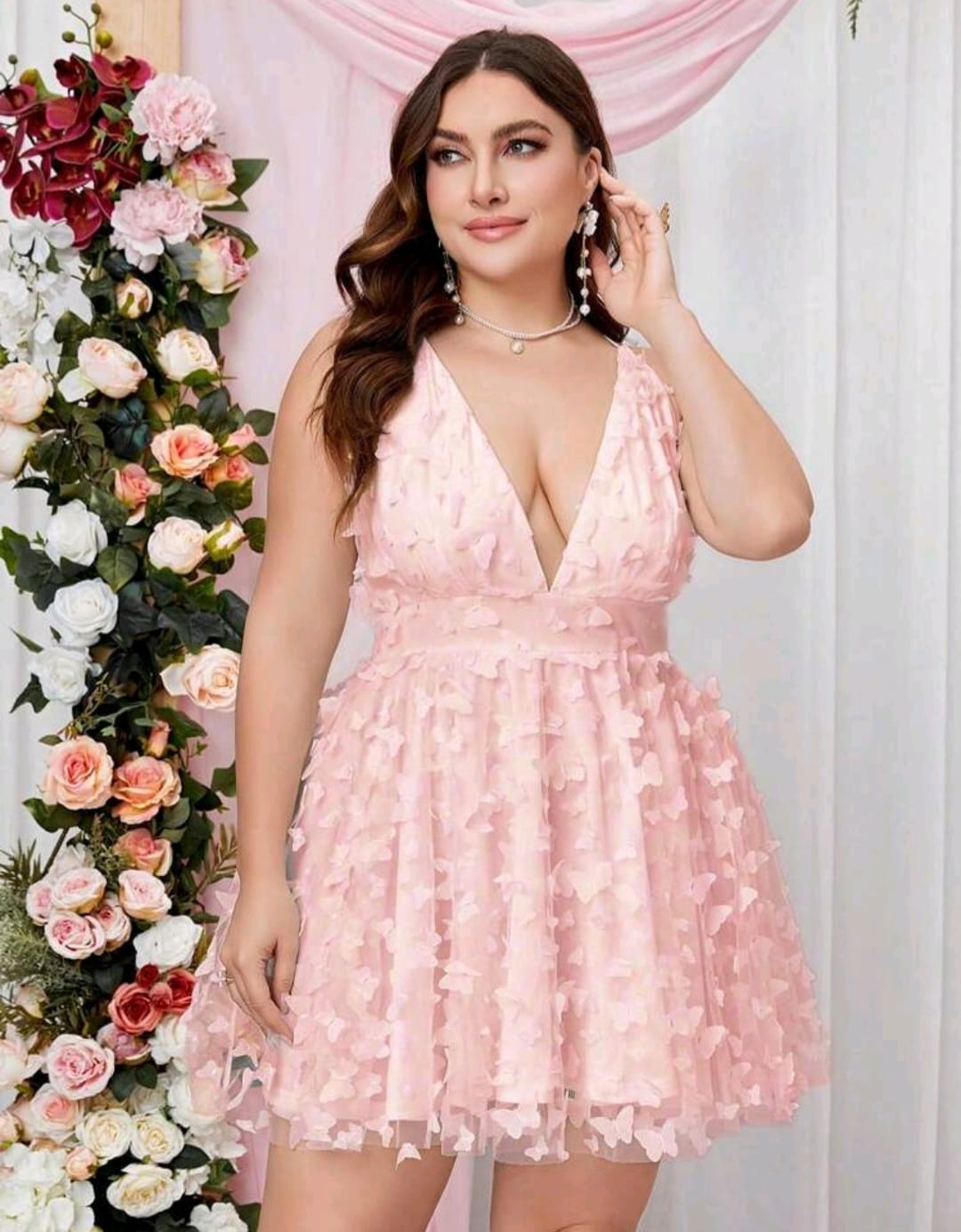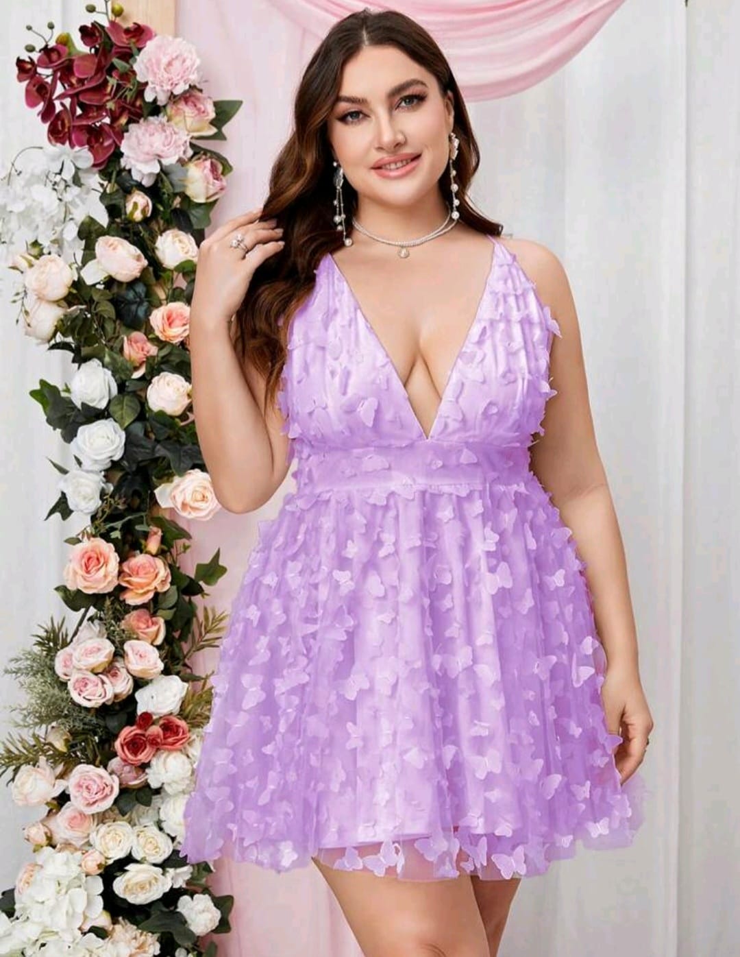 Double crazy plus, plunging appliques mesh dress
