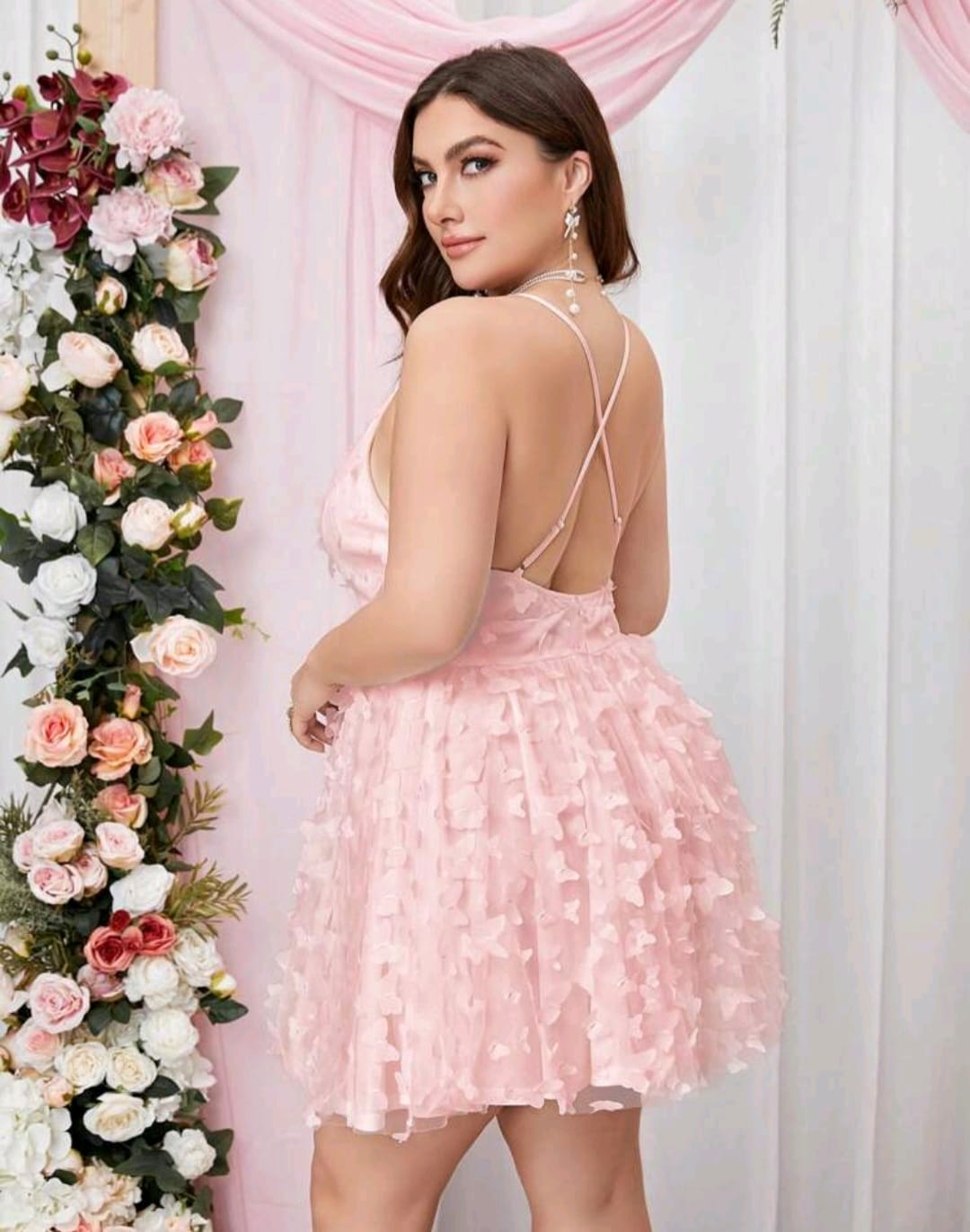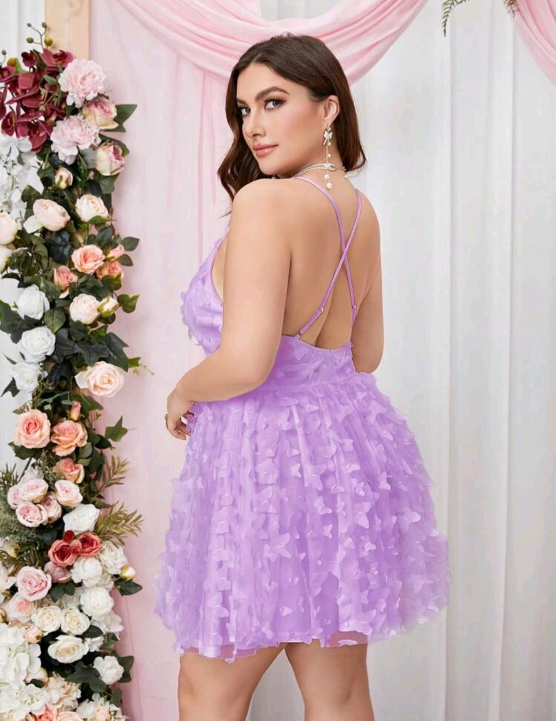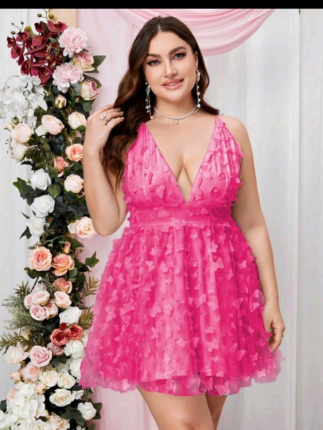 Double crazy plus, plunging appliques mesh dress