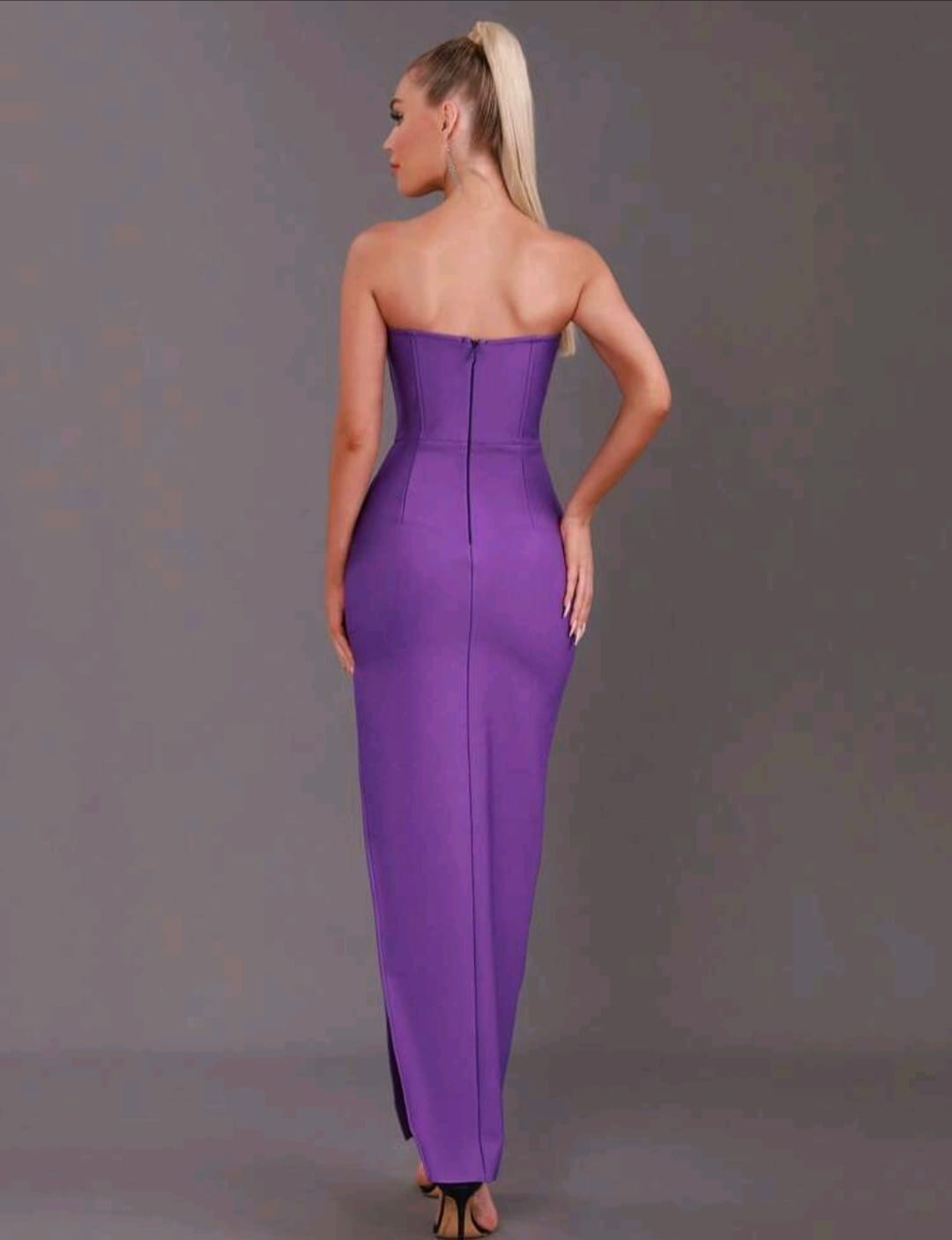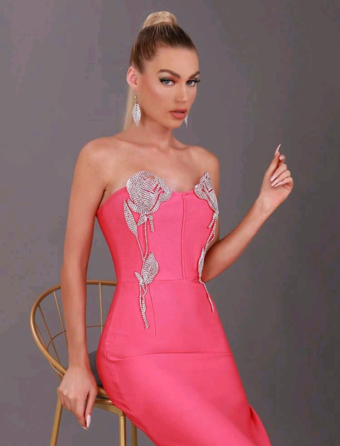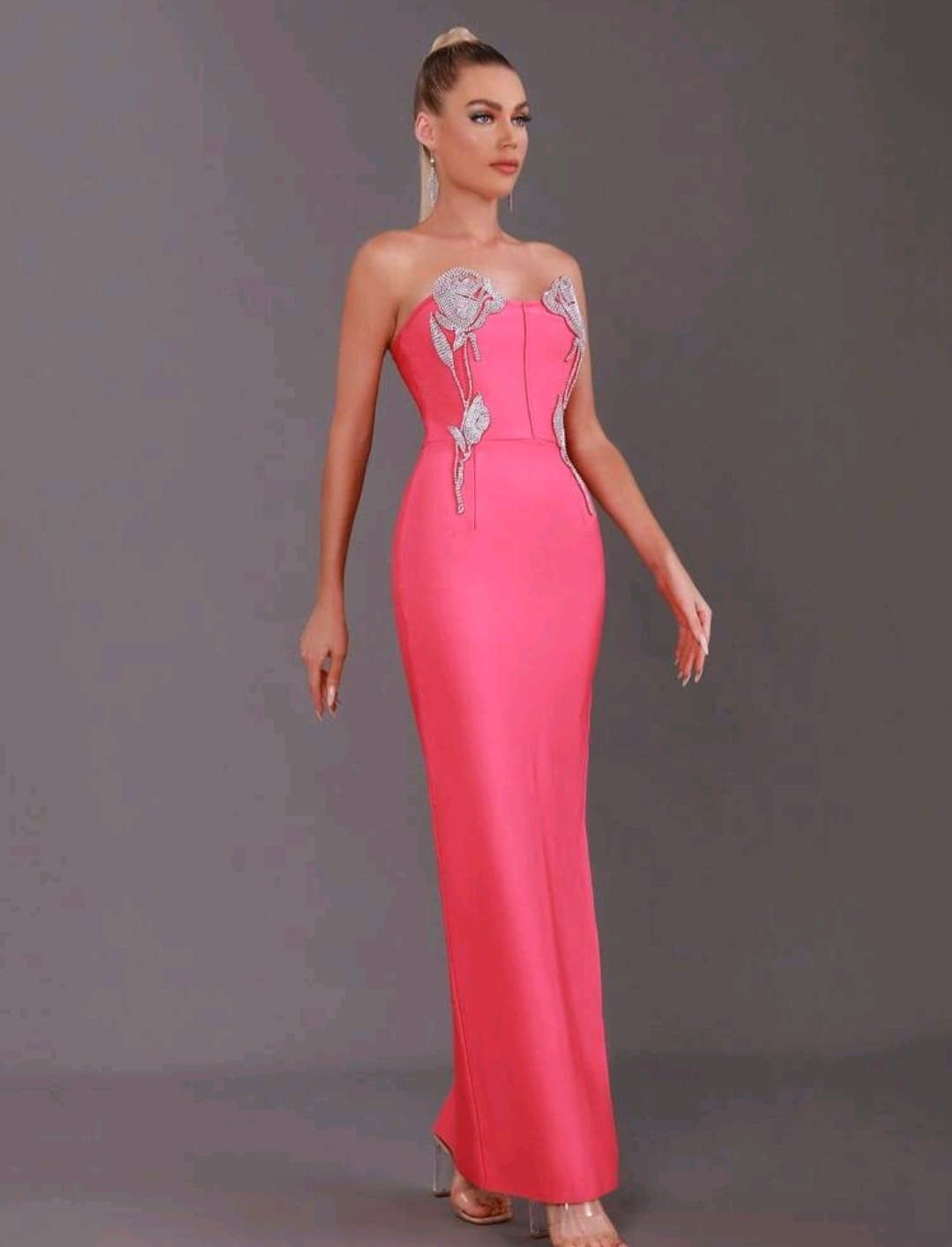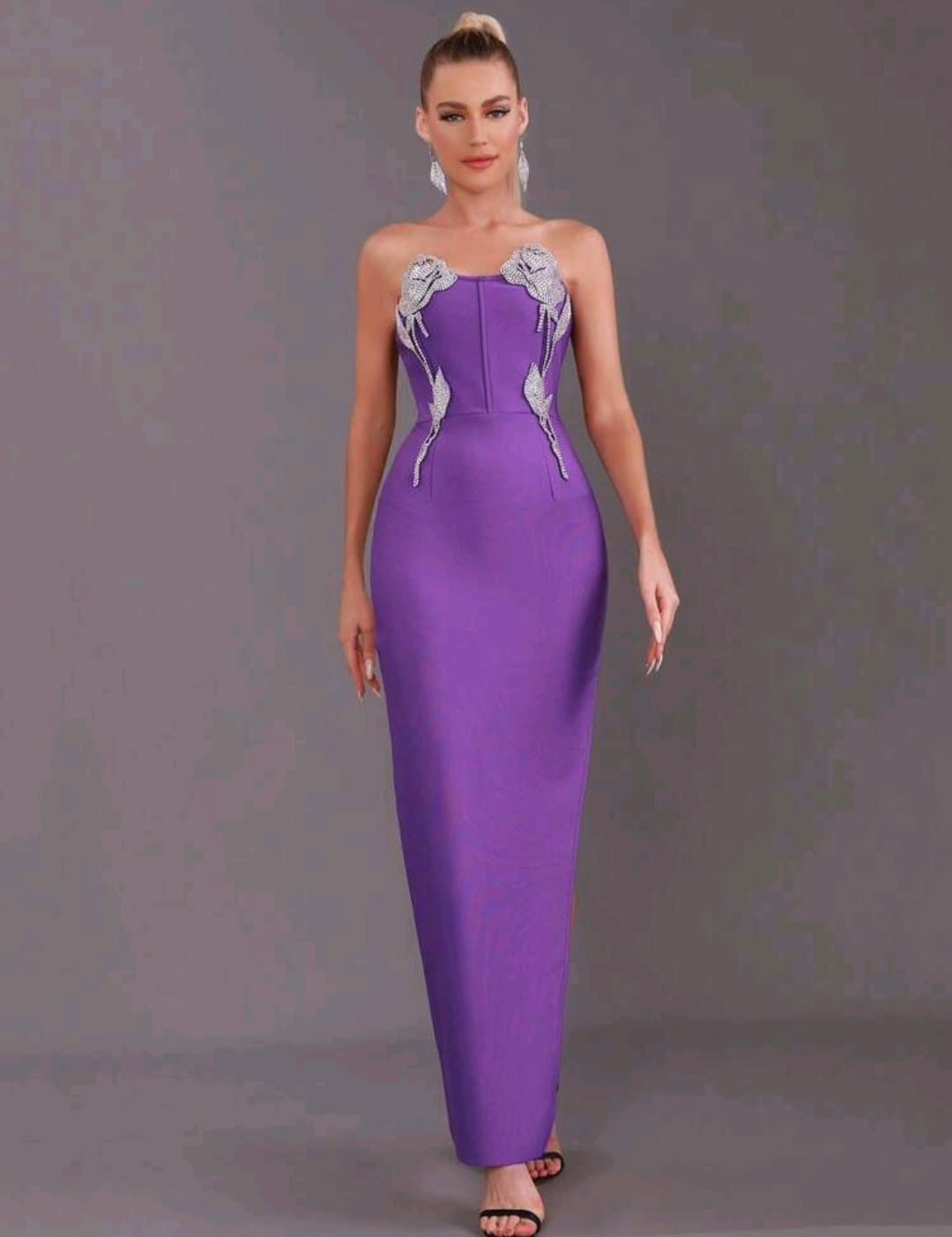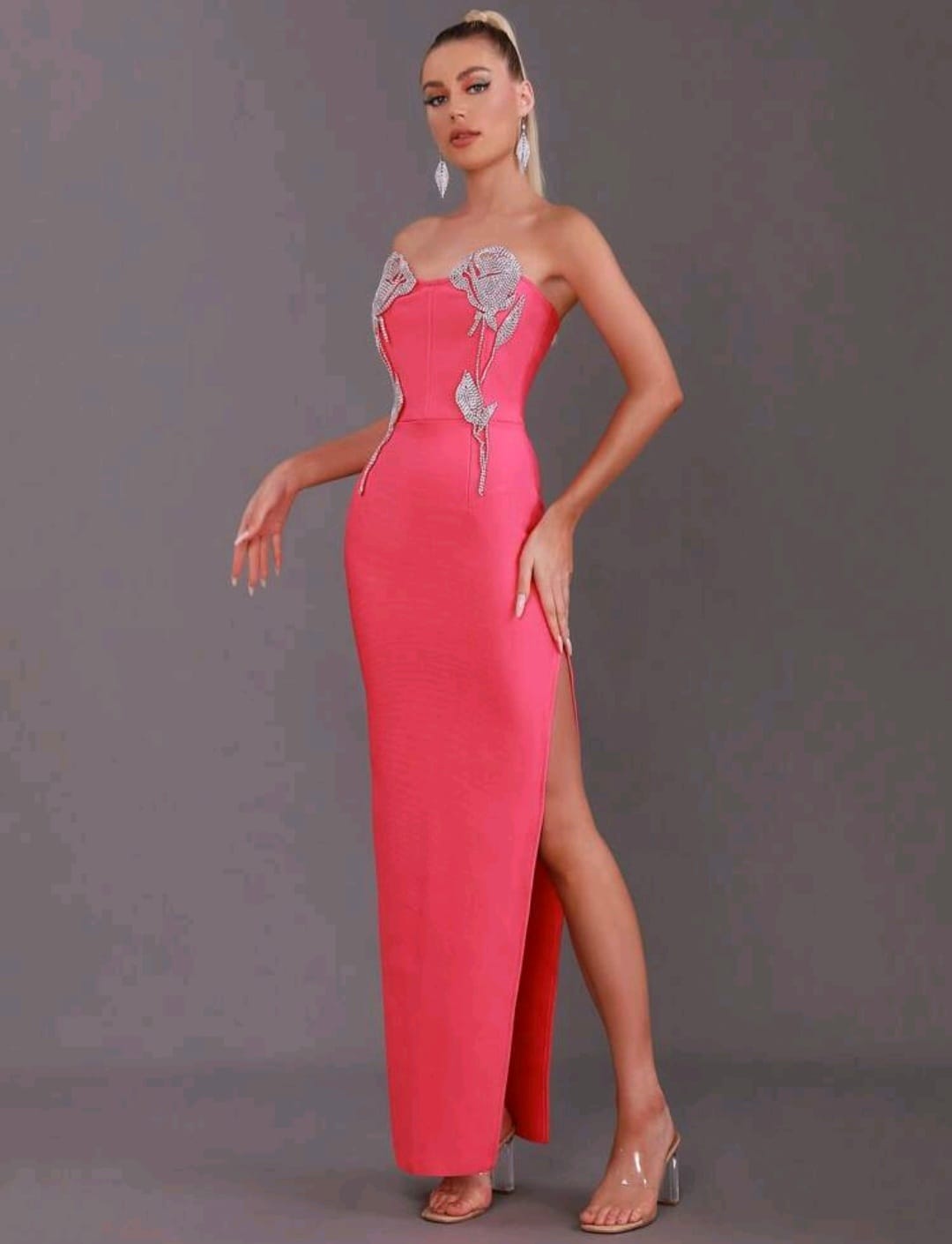 Rhinestones detail split thigh dress