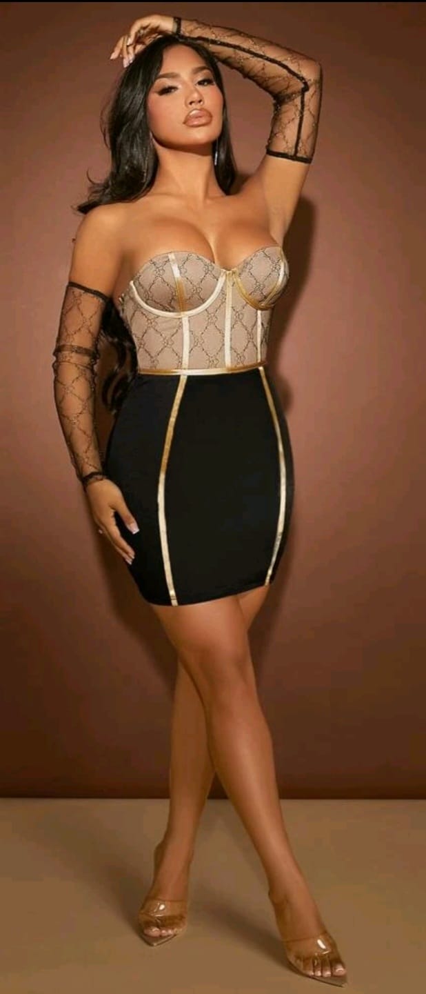 Off shoulder contrast mesh seam bodycon dress